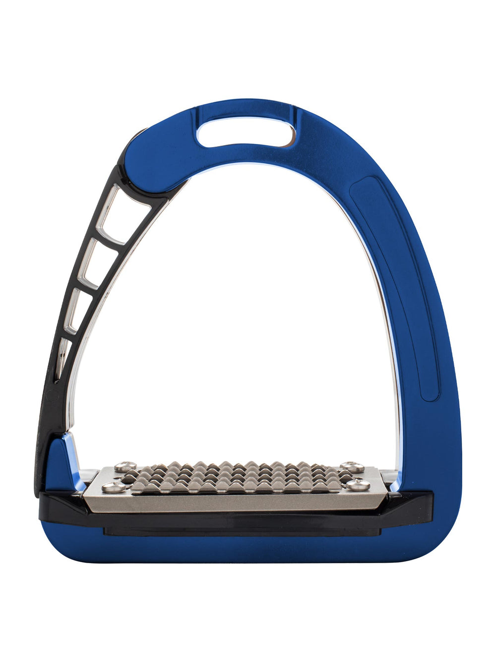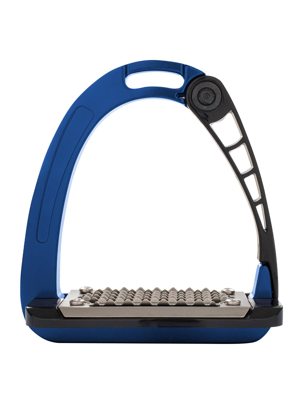 The patented side opening was created using an innovative injection moulding technique. The outward opening of the stirrup arm aids in the release of the foot in case of emergency.
