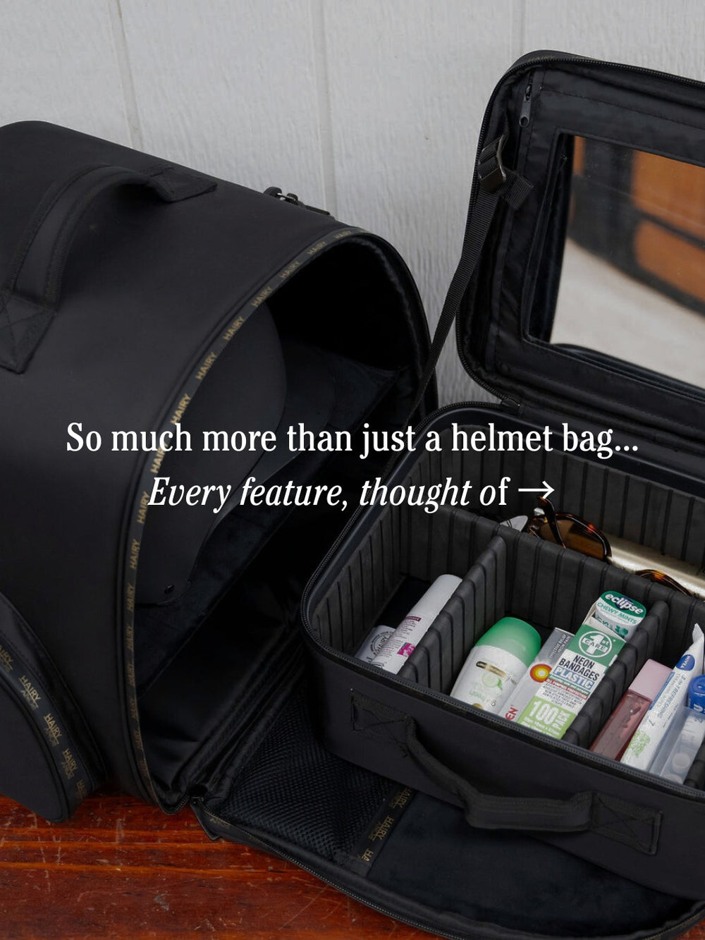 The Hairy Pony Helmet Bag offers ample room to keep your helmet, accessories, and daily essentials all in the one place — ideal for keeping things neat and tidy at home or staying organised on competition days.