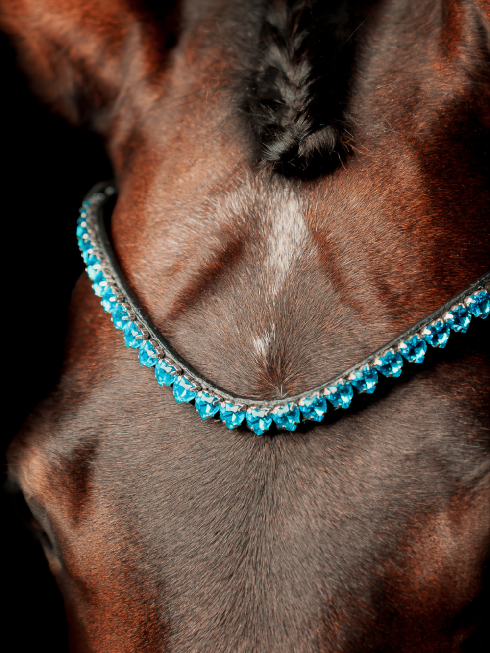 The Je Táime browband is SO adorable with a row of the most beautiful crystal hearts that sparkle in the sun. The browband has our latest closure, so it is easy to change the browband on your bridle. The actual curve on the browband is truly unique and a design we have developed ourselves, so you are sure that the browband curves beautifully down your horse's forehead.