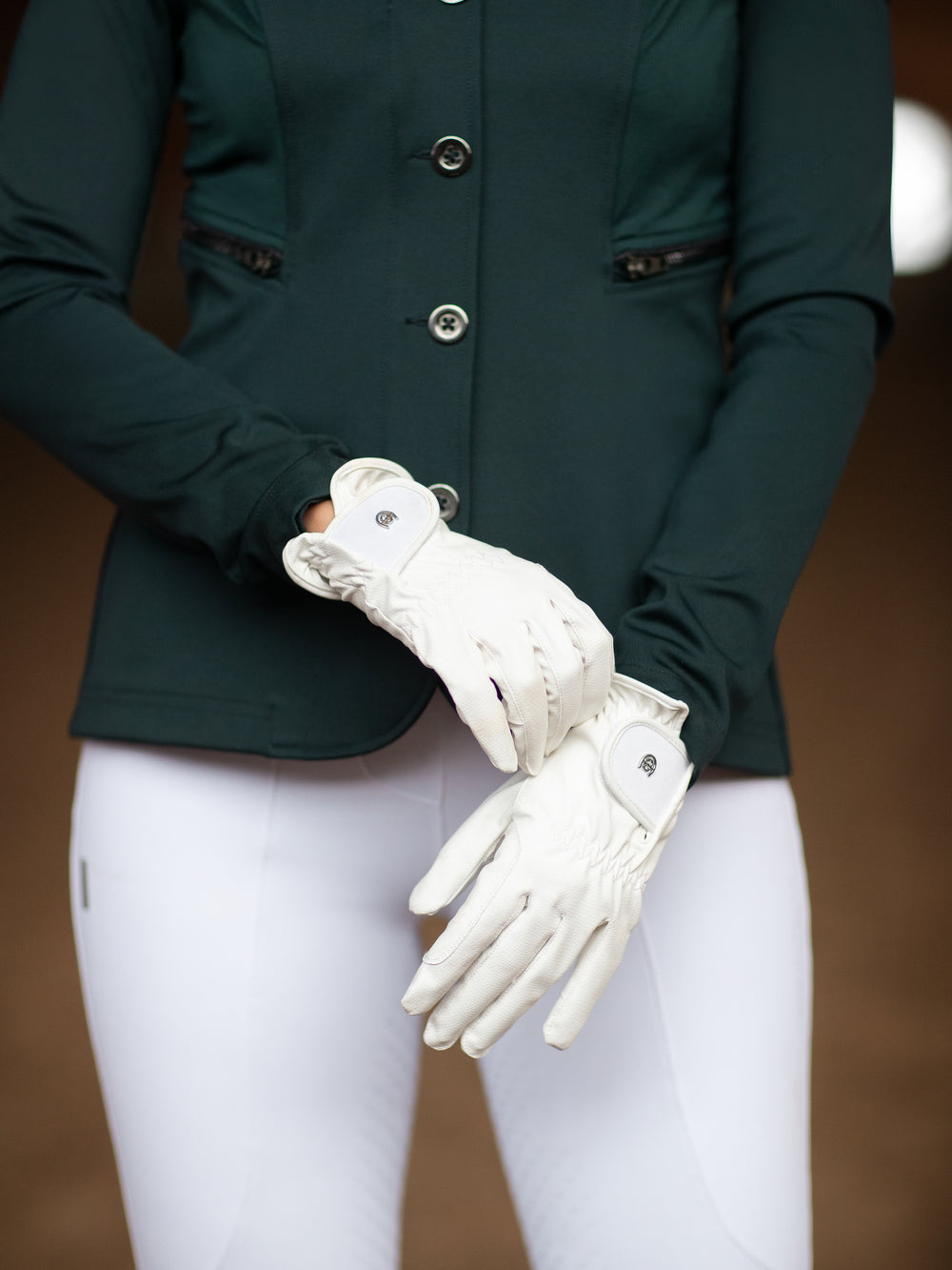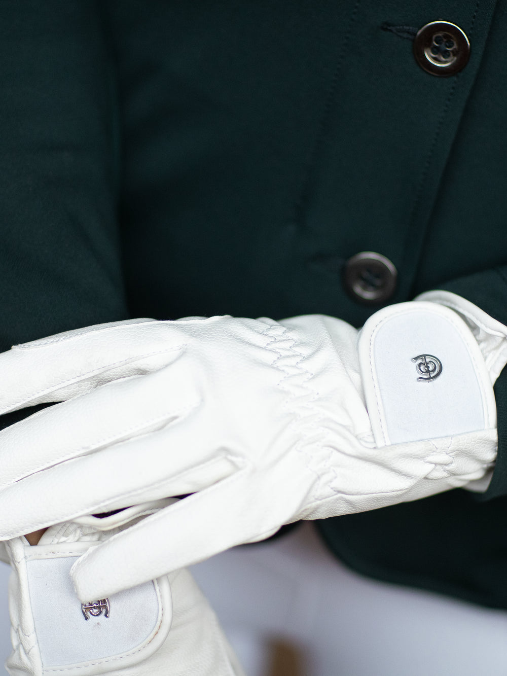 Our exclusive riding gloves in a classic white colour. Designed in a high quality, soft and comfortable material with synthetic leather details for the perfect grip. This gives you a great feel on the reigns and will help you achieve better contact, supporting you in accomplishing your riding goals.