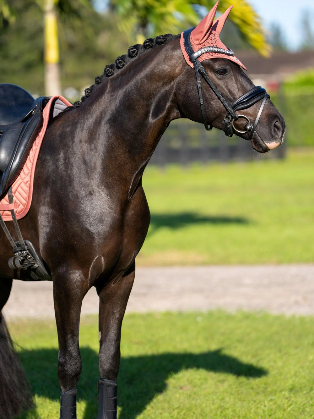 Elegant saddle pad with modern quilting in coral pink with silver details. Decorated with the Equestrian Stockholm badge in silver. The bamboo material is perfect all year round due to its thermal regulating effect - cooling in the summer and warming in the winter. It is also quick dry, moisture wicking, and anti-bacterial. Style with other pieces from the Coral collection for a head-to-toe stylish look.