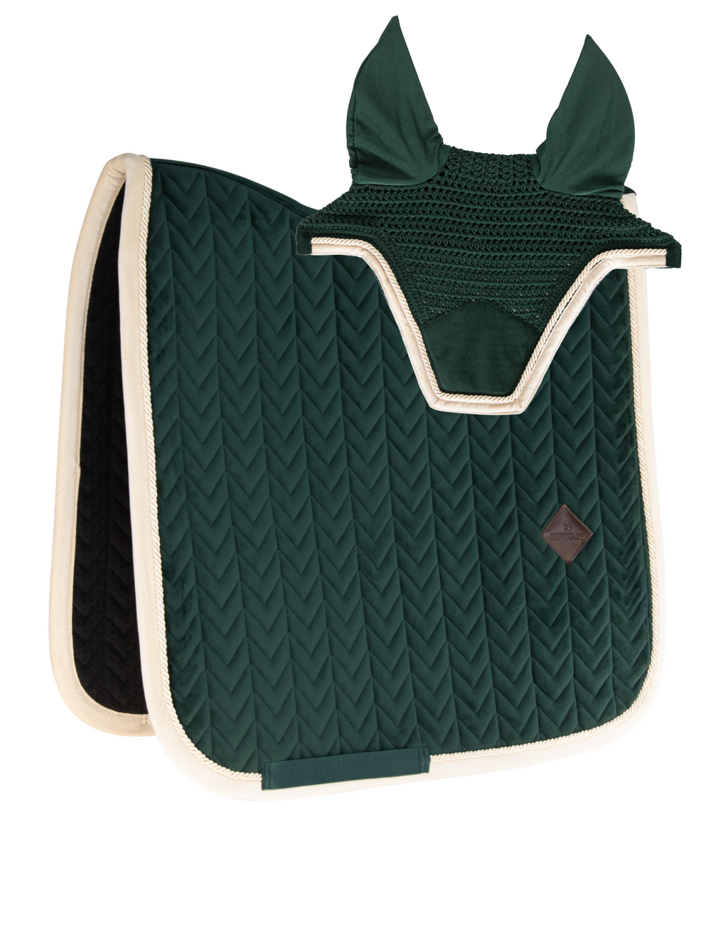 Kentucky Velvet Contrast Dressage Saddle Pad & Ear Bonnet Pine Green