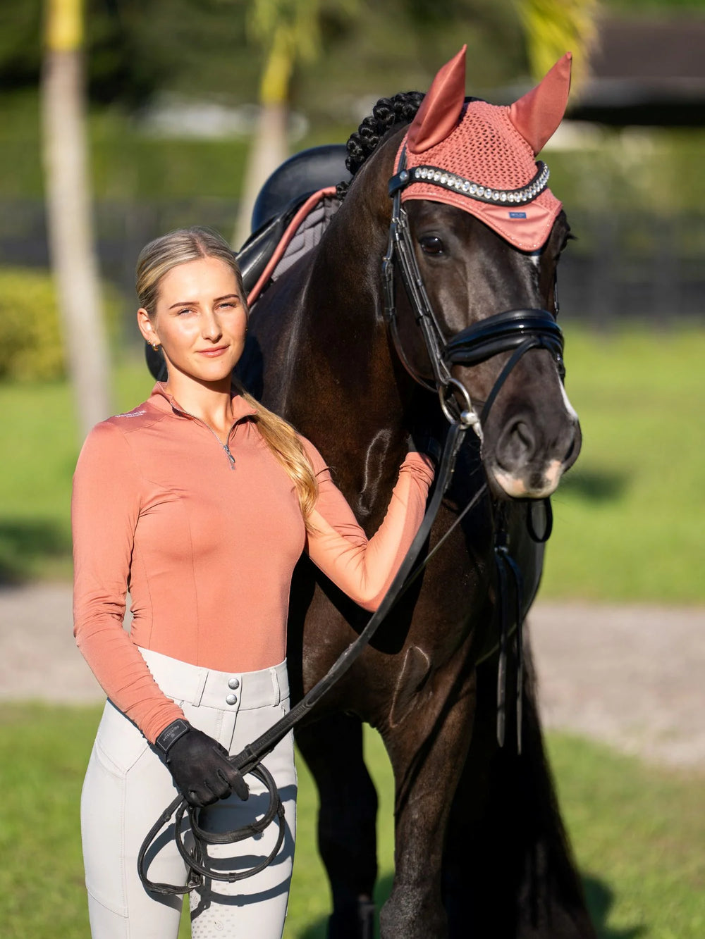 This ultimate riding top for warmer days comes in an elegant coral pink design with a silver zipper at the front. Created with a breathable mesh panel and ultra-thin material that breathes well and has a cooling effect.