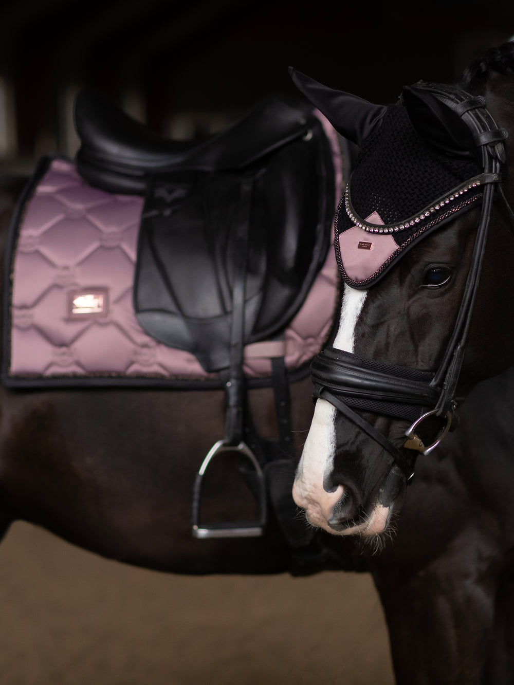 Elegant saddle pad in a pink colour with black and rose gold details. Decorated with the Equestrian Stockholm badge in rose gold. The material is treated with High IQ cool comfort which gives the saddle pad quick dry and moisture wicking abilities. This helps your horse stay dry and fresh longer. Style with other pieces from our Anemone collection for a head-to-toe stylish look.