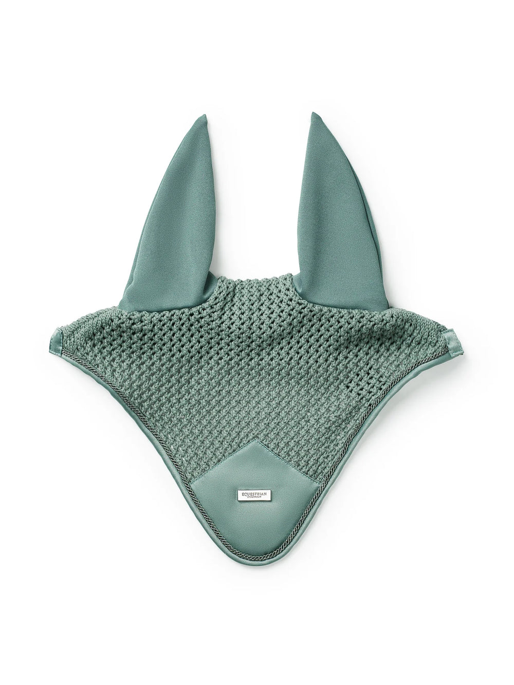 Luxurious crocheted ear bonnet in a stylish mint green. Decorated with a mint green satin patch on the front, beautiful mint green piping and an Equestrian Stockholm badge in silver. The ear net provides both insect protection and noise reduction. It has elastic cloth on the ears for extra comfort.