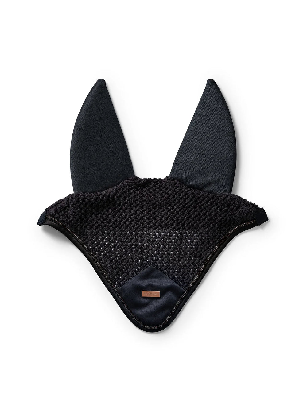 Luxurious padded ear bonnet in an elegant dark ocean blue color. Designed with padded ears to reduce noise. Decorated with a tone-on-tone satin patch on the front, beautiful piping, and an dark ocean blue edge border. Styled with the Equestrian Stockholm badge in rose gold. The bonnet provides both insect protection and noise reduction. This ear net matches perfectly with the saddle pad from the Dark Ocean collection.