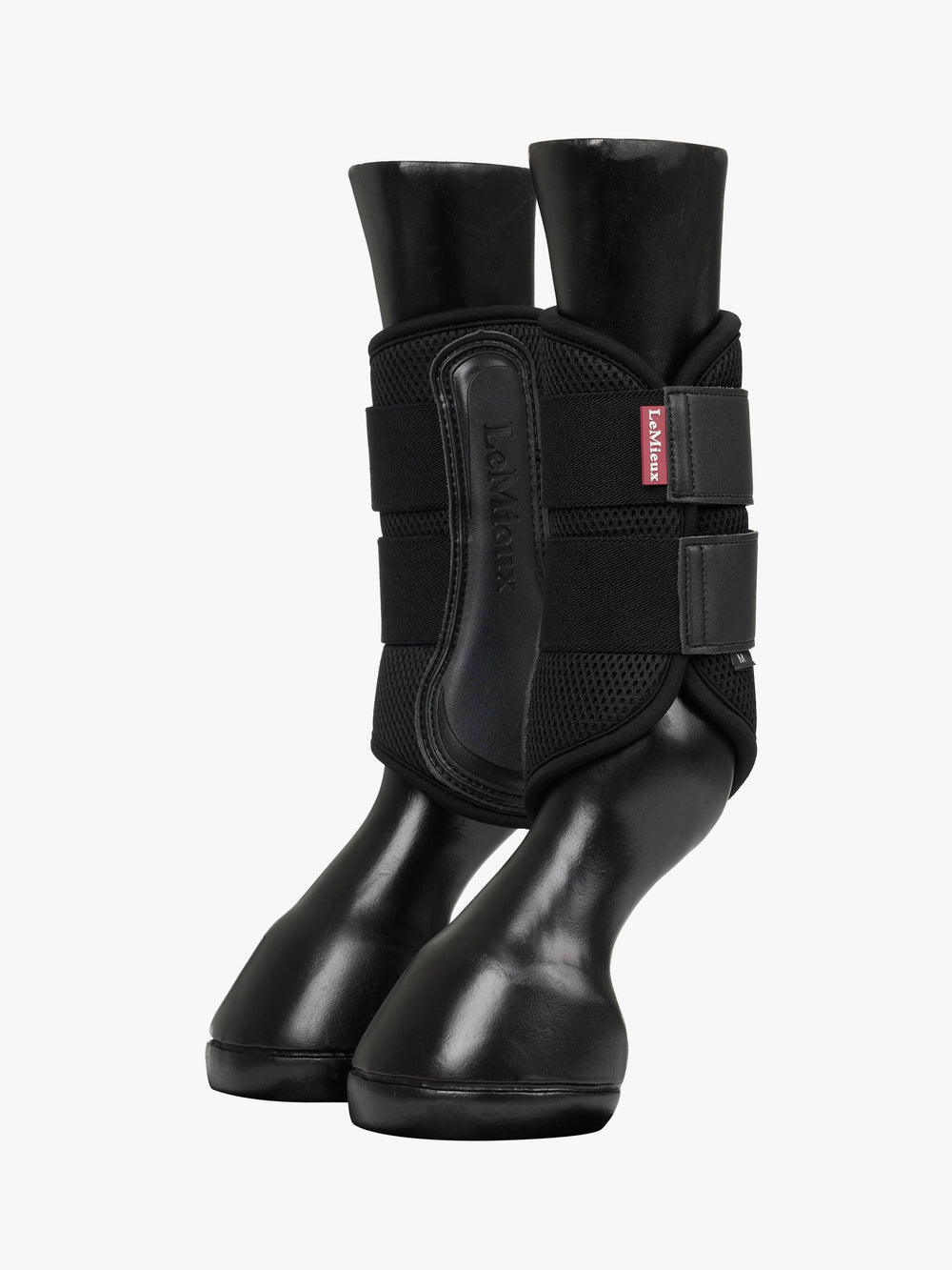 These lightweight boots have a perforated, breathable mesh lining, a protective, grained PU leather palm, and neat PU leather hook and loop tape straps. The 3D mesh outer places these among the most breathable brushing boots on the market. Soft and smooth binding around the outer edges prevents rubbing.