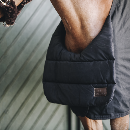 The BIB is very soft with its 100% peached polyester outer fabric and offers great comfort to the horse. Not only does it prevent rubbing, the BIB also equalises the pressure the rug puts on the horse’s chest. The BIB can also be used in the same way to protect the withers and is ideal to use in combination with a fly rug or a summer sheet but can of course be used in combination with all kinds of rugs. The BIB is machine washable at 30°, no dryer.