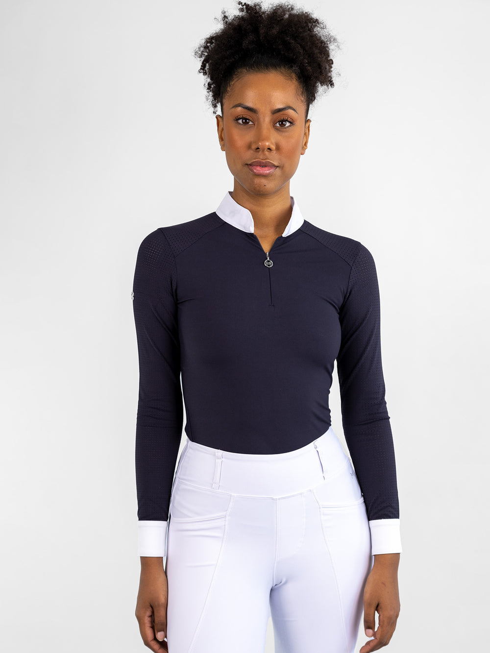 The ideal competition shirt for all seasons. Tested by professional riders in all disciplines. Available in multiple colours, with collar and sleeve details in white.