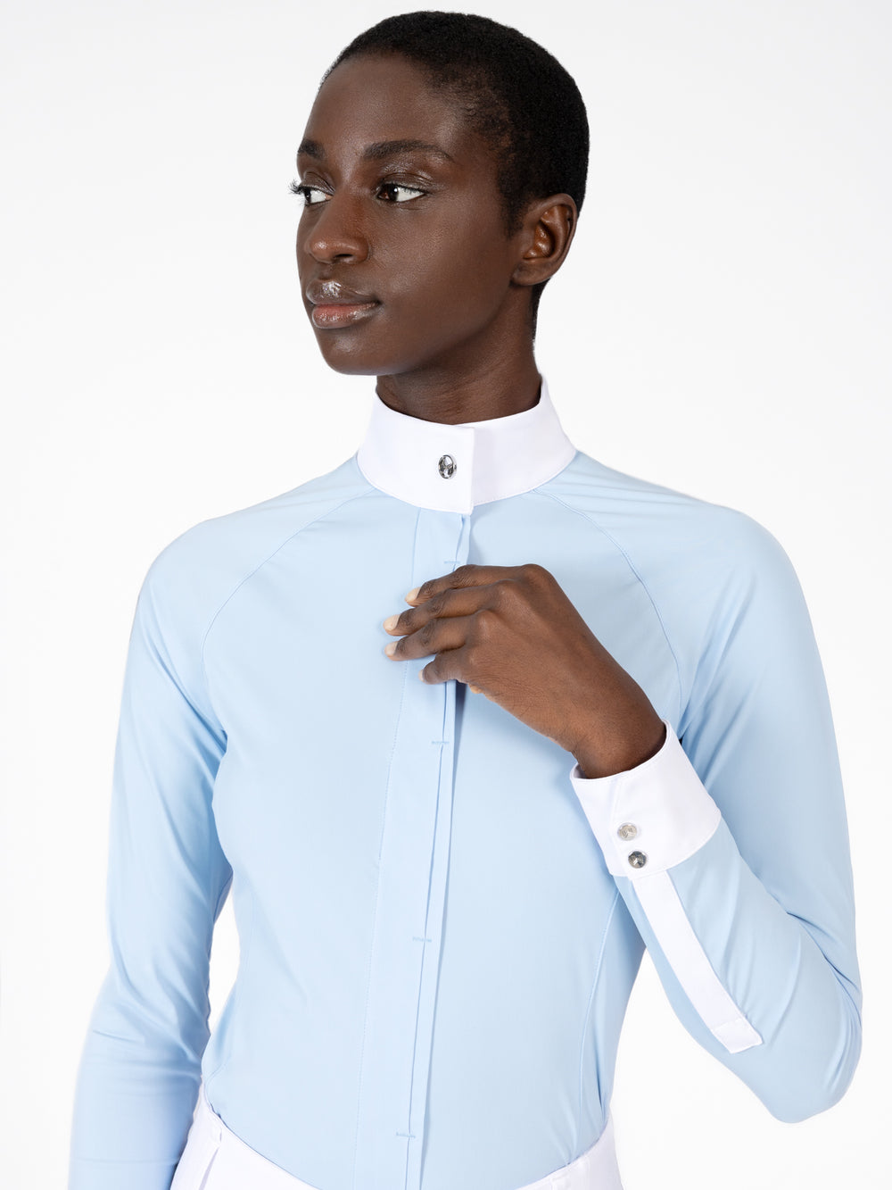 Elegant with a modern touch: Presenting our new Aira Show Shirt. It combines the timeless appeal of a classic shirt with the comfort and performance of a technical show shirt.