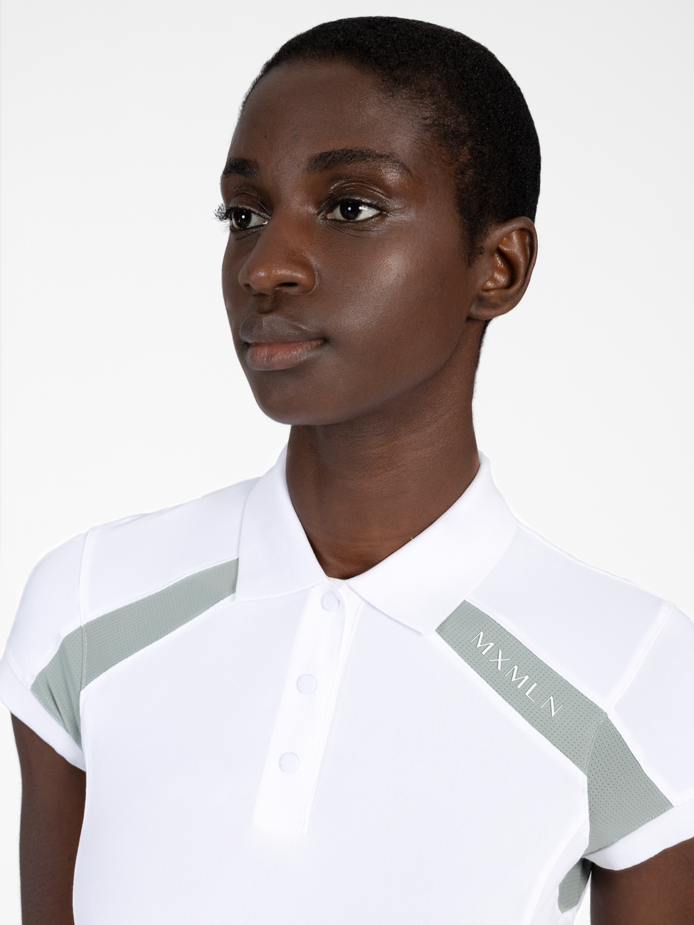 Our Aveen Polo Shirt has a feminine yet sporty design. The characteristic mesh panels maximize breathability and comfort while wearing it.