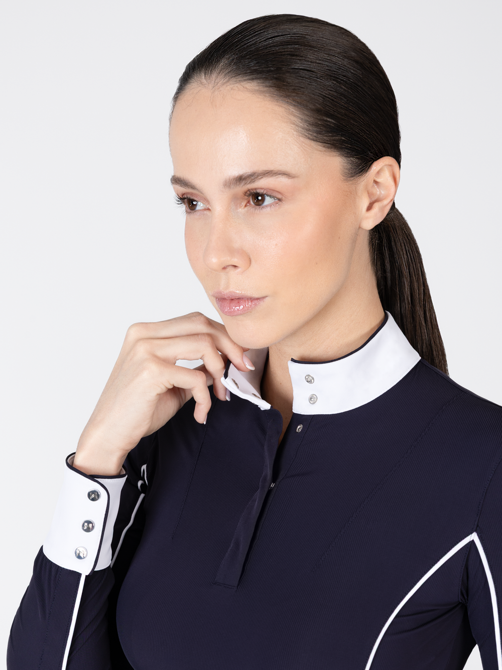 - Flattering feminine fit with contrast piping to accentuate the silhouette