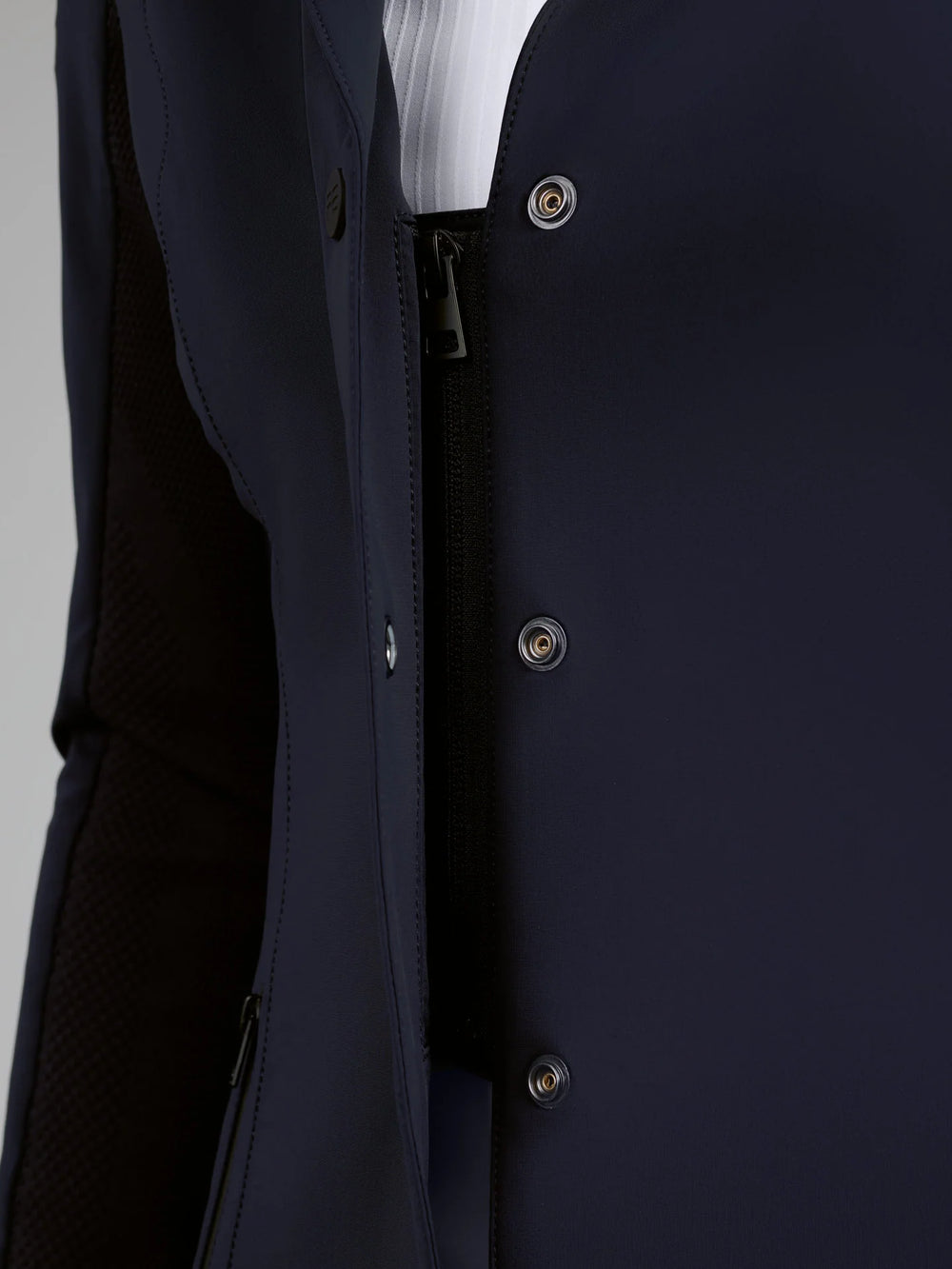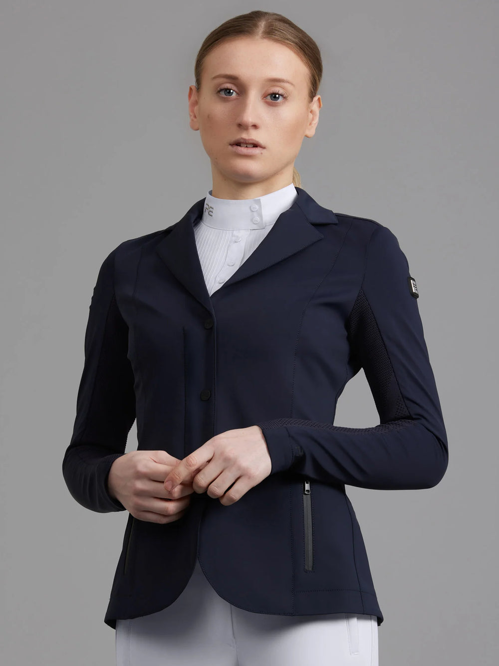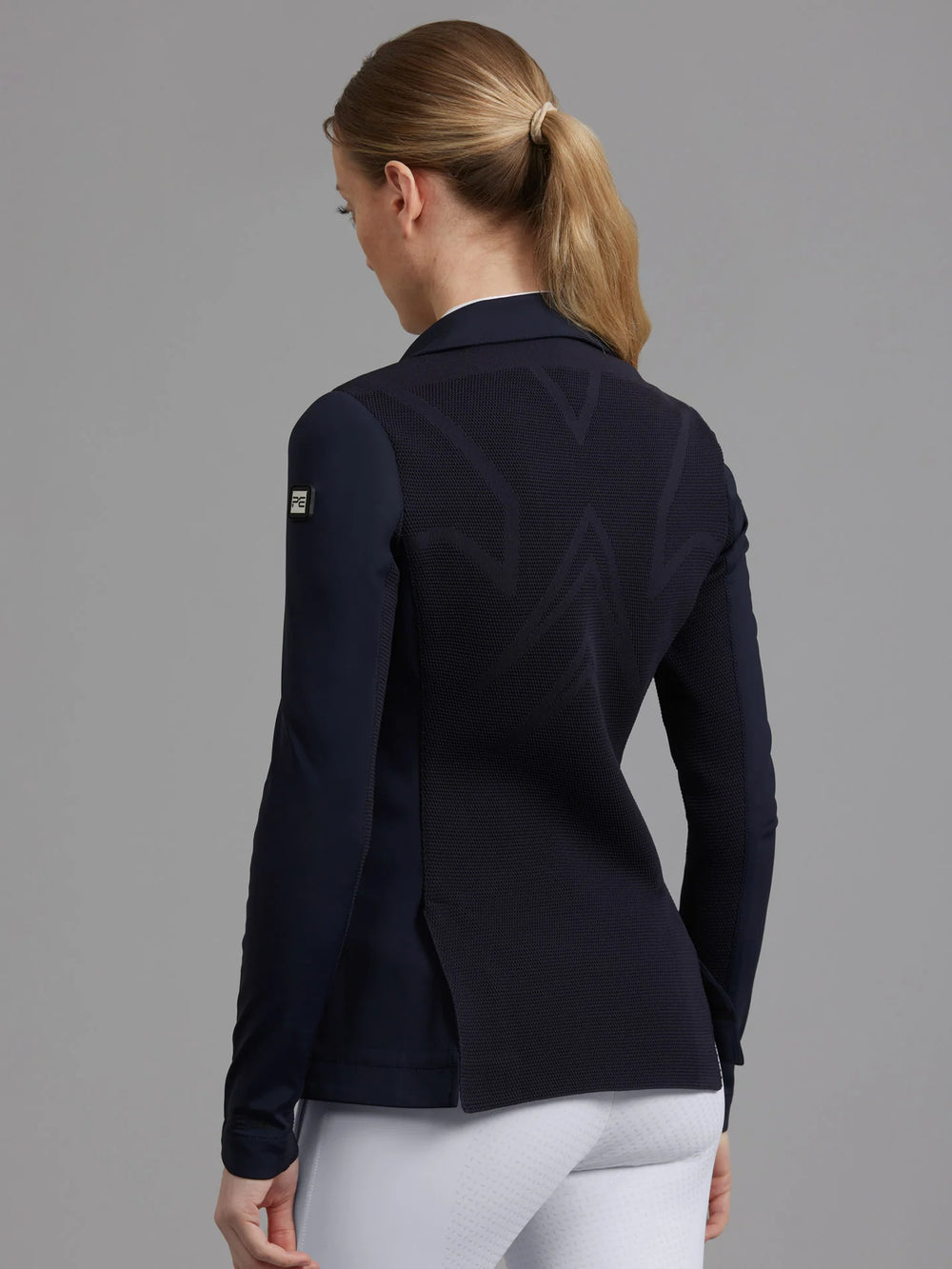 This ladies competition jacket is ideal for a wide variety of equestrian disciplines. The construction of this innovative design combines panels of differing technical fabrics. The face of this jacket is crafted from a lightweight sleek material that feels luxuriously soft to the touch and comfortable against your skin. Evolved for the modern rider, the back and arms incorporate a technical 3D knit which is moulded to the muscular anatomy of the back and shoulders of the rider. This innovative construction allows for enhanced freedom of movement whilst creating unparalleled breathability, perfect for the intensity of competition.