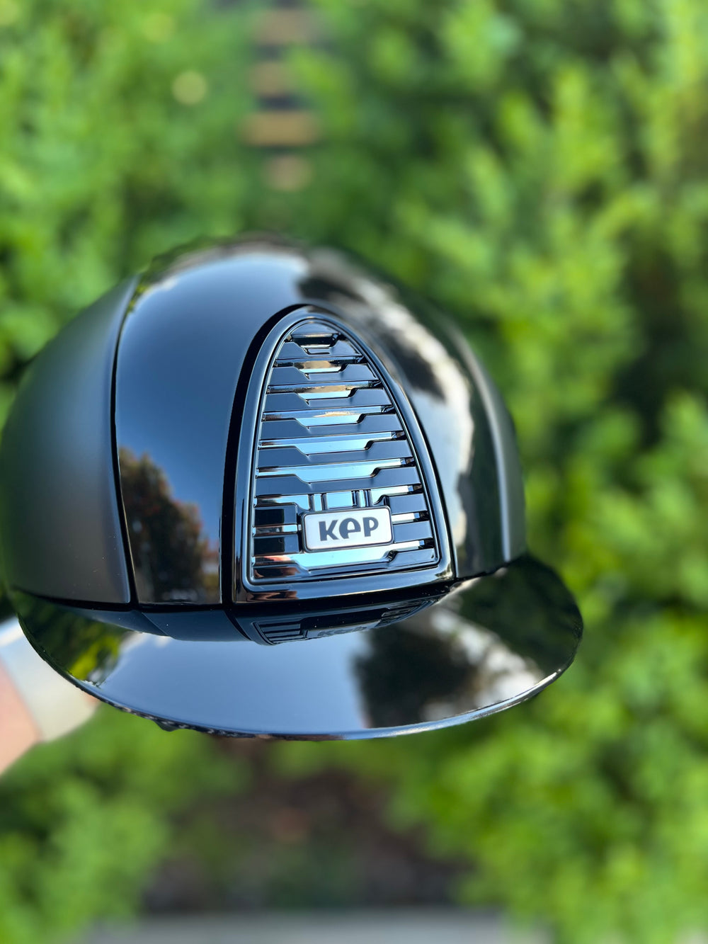 CROMO 2.0 is fitted with an integrated microchip, positioned under the front insert, to which you can upload the rider's health details using the KEP App. In case of need, this can help speed up the provision of first aid. Every helmet also comes with a jockey visor. Weight: 500 g size M - 535 g size L.