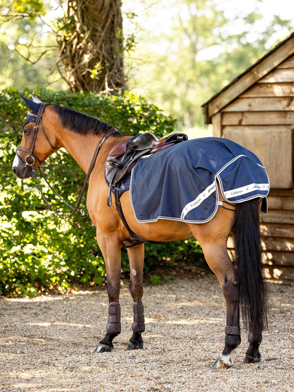 The Lemieux Waterproof Exercise Quarter Sheet has been developed with a 600 Denier water-resistant outer layer and cosy fleece lining to protect the horse's coat from the elements and prevent chills during warm-up or hacking.