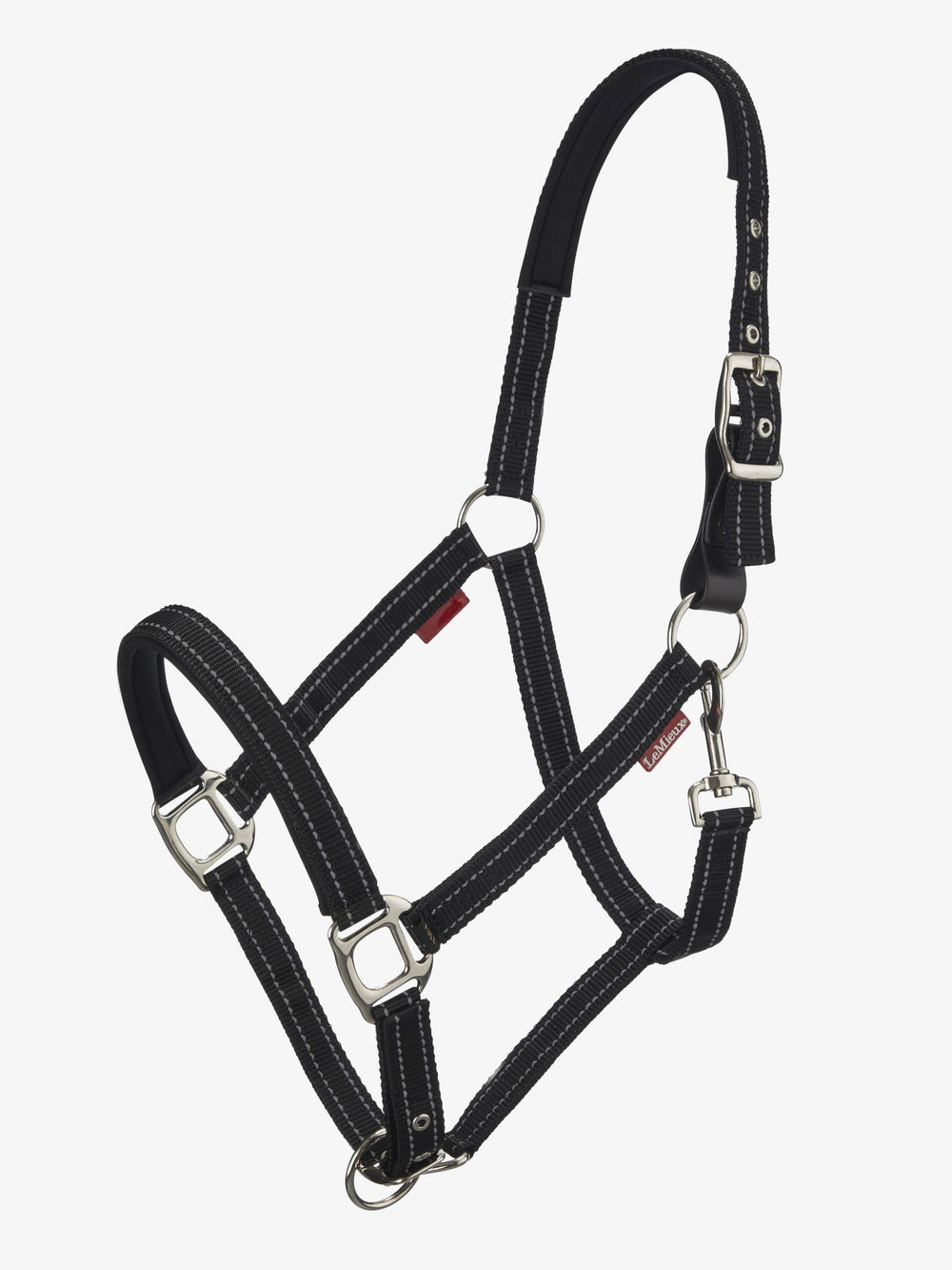 The neoprene padded lining provides extra comfort and evenly distributes pressure. There's also a double adjustment at the nose and cheek and trigger clip throat lash. This season's headcollar comes with an additional leather tab that's designed to break if used with the spare attachment. This gives you the option to use it as a breakaway or normal headcollar.