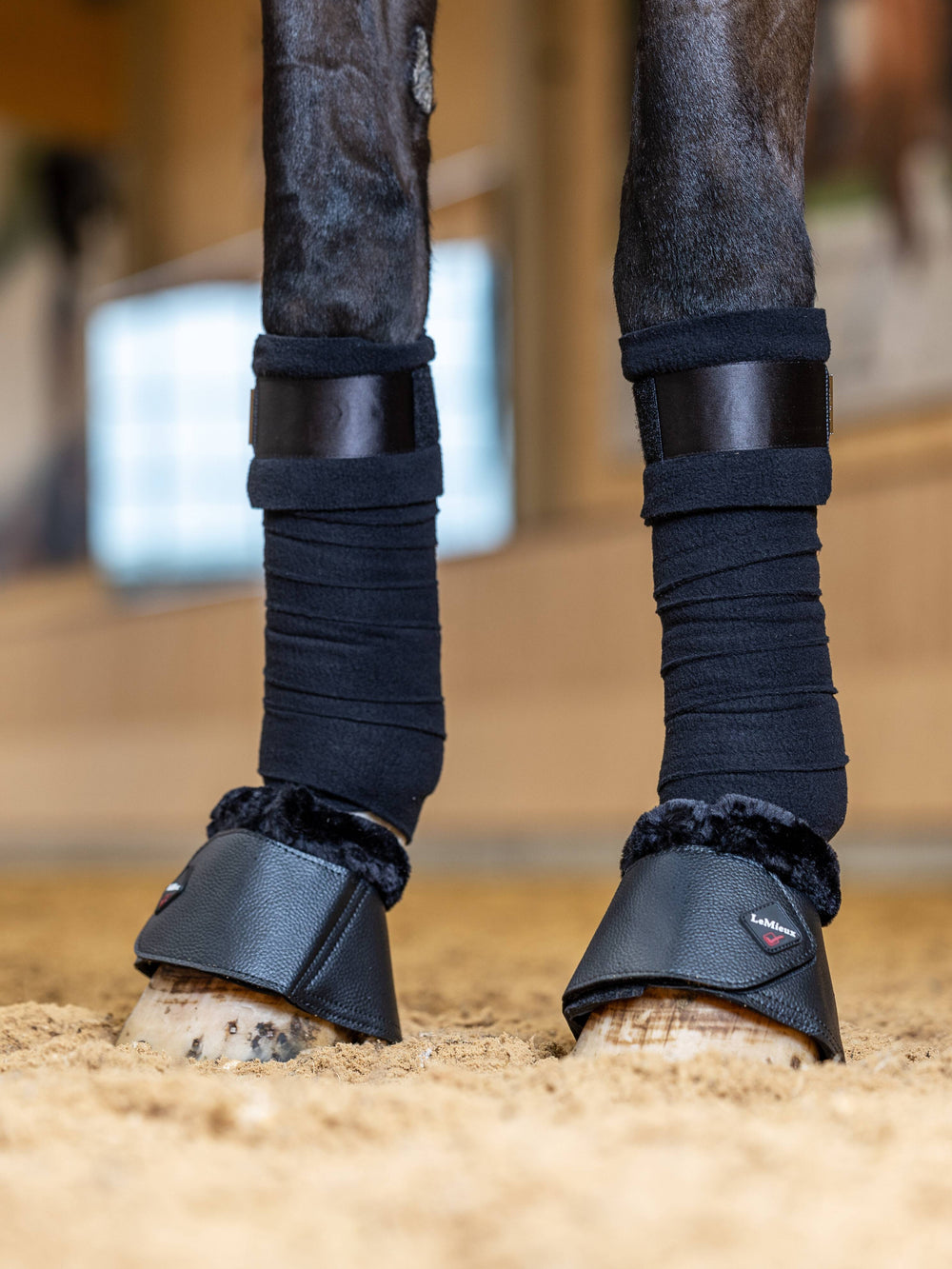 These luxurious new style PU faux leather overreach boots are edged with a super soft fleece collar to prevent rubbing and maximise comfort.