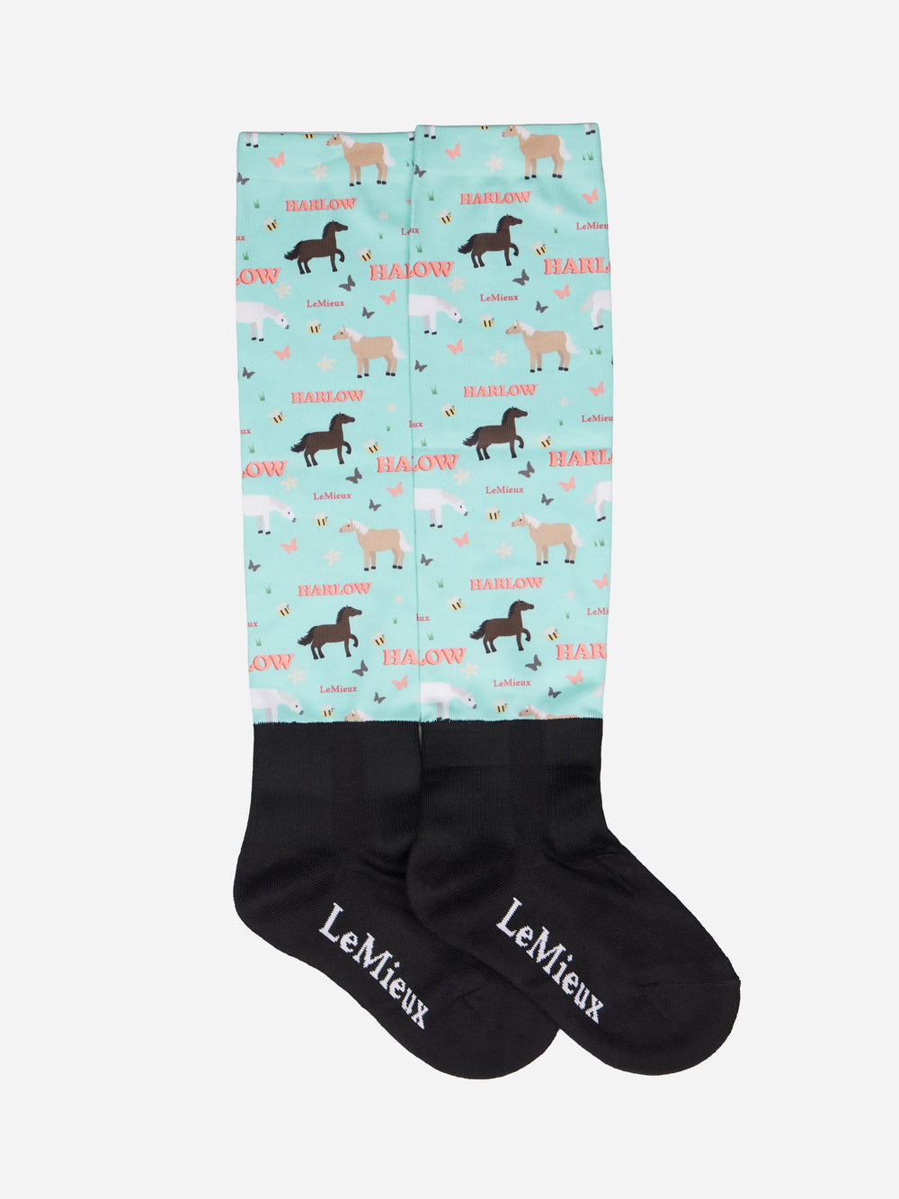 Harlow loves our famous Footsie Socks, so they were a must for her new LeMieux x Harlow collab collection! Served with a funky print featuring Harlow's ponies Popcorn, Rolo and Cloudy, they're a great way to add some fun to your equestrian look.