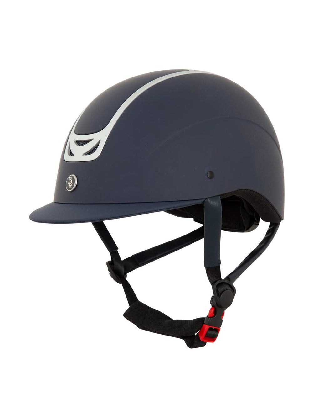 The BR riding helmet Volta Painted features a lightweight shell made of strong ABS material. Its top is embellished with a silver coloured trim that has multiple ventilation apertures.