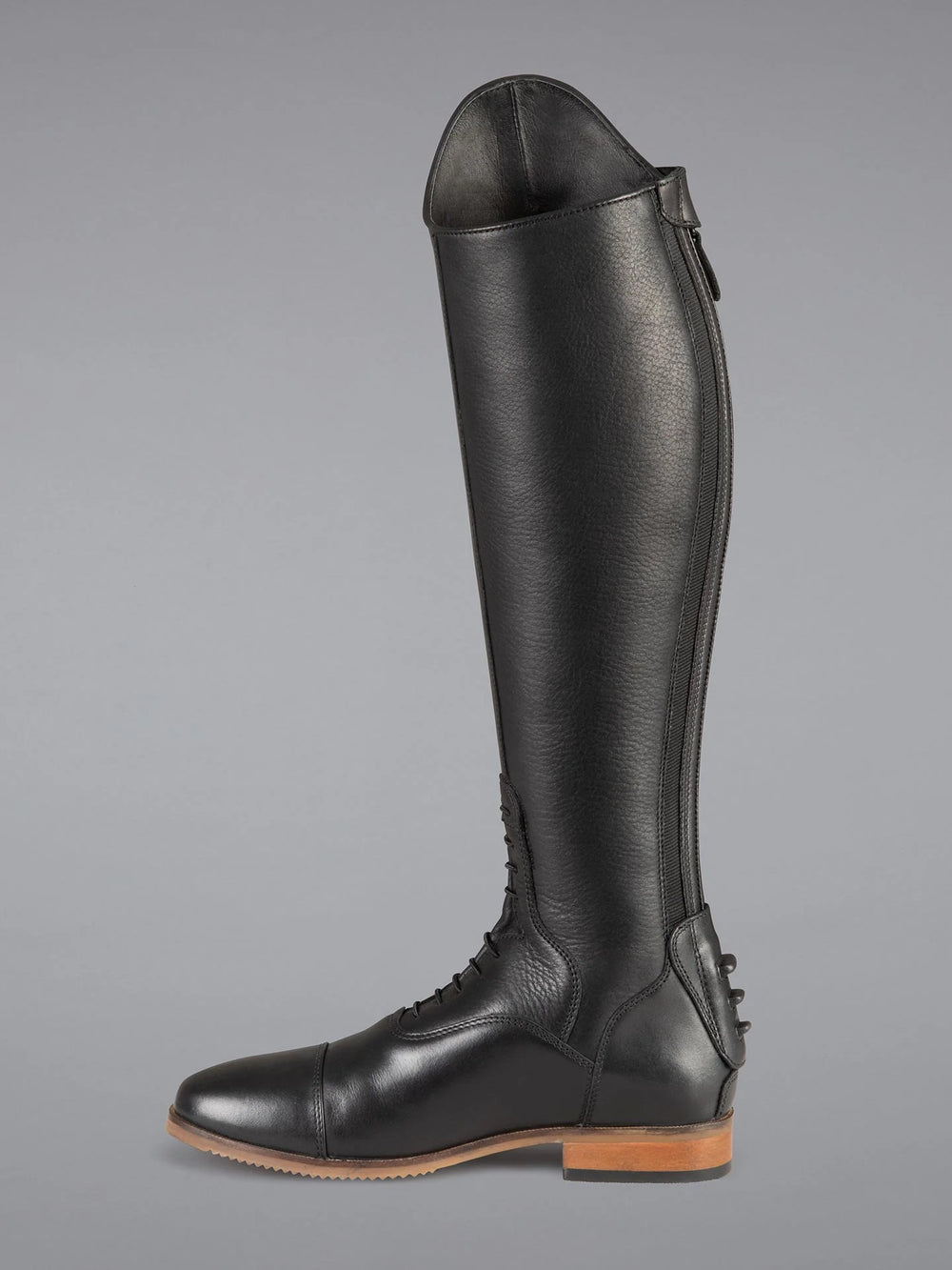 These innovative ladies long leather riding boots are crafted from high-quality European leather, creating supple and comfortable wear from the first use. German Aniline leather has been integrated into the inside of the calf; aiding in the grip in the saddle and soft-touch communication with the sides of the horse.