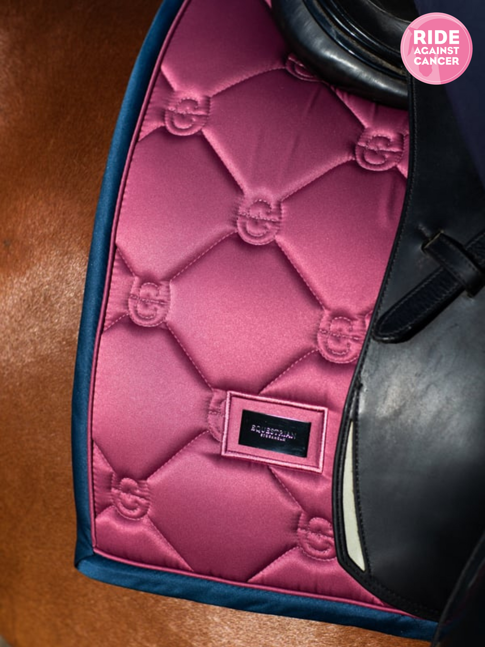Elegant saddle pad in dark pink and with deep blue details. Decorated with the Equestrian Stockholm badge in chrome. The bamboo material is perfect all year round because of its thermal regulating effect – cooling in the Summer and warming in the Winter. It`s also quick dry, moisture wicking and anti-bacterial. Style with other pieces from the Timeless Rose collection for a head-to-toe stylish look.