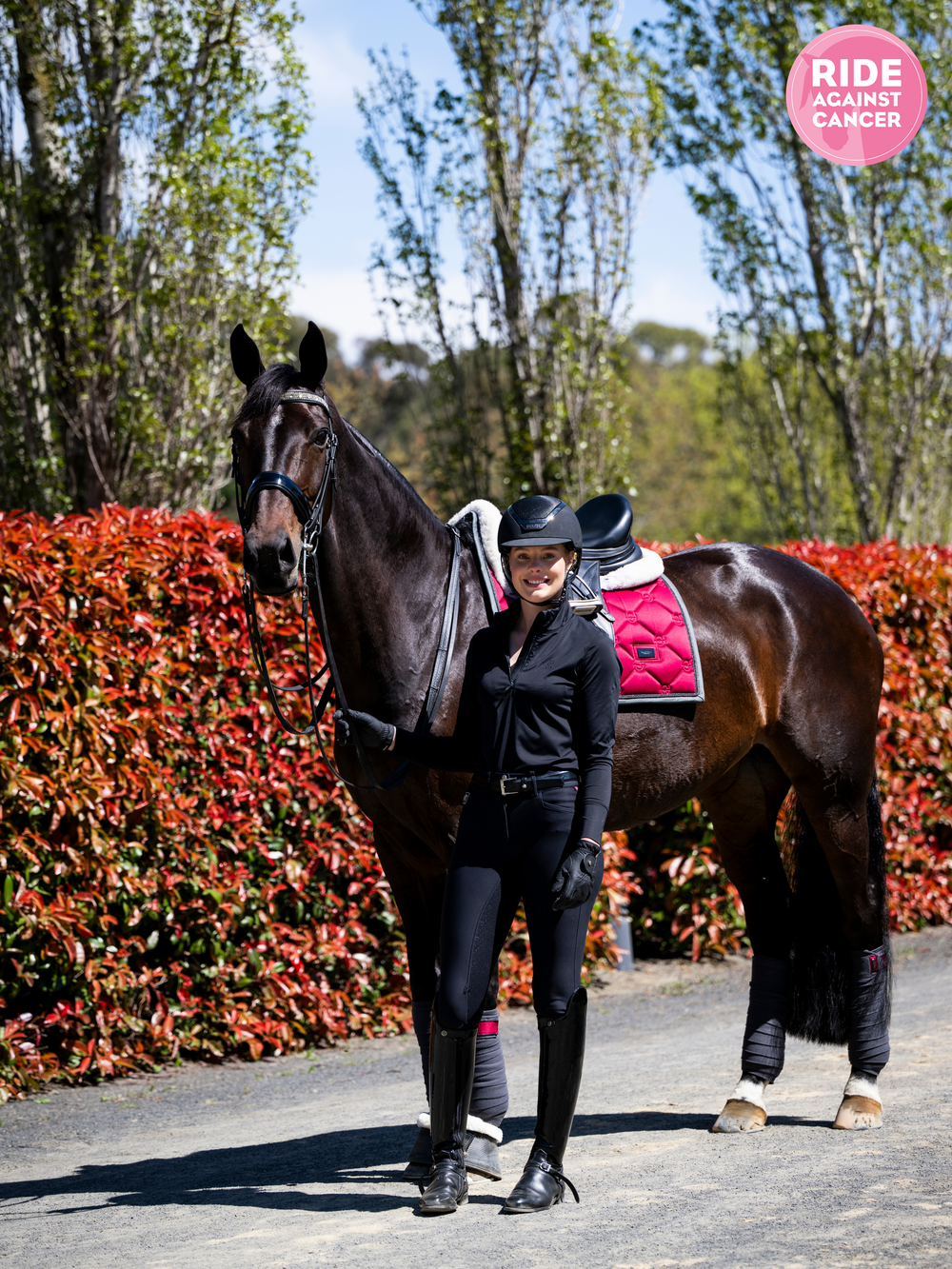 Elegant saddle pad in a dark pink colour with chrome and grey details. Decorated with the Equestrian Stockholm badge in chrome. The material is treated with High IQ cool comfort which gives the saddle pad quick dry and moisture wicking abilities. This helps your horse stay dry and fresh longer. Style with other pieces from the Wild Rose collection for a head-to-toe stylish look.