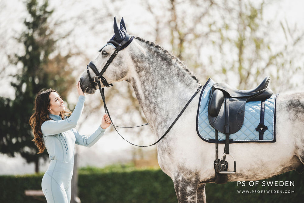 PS of Sweden Bow Dressage Saddle Pad & Ear Bonnet Aqua