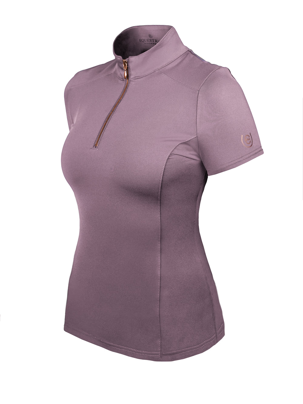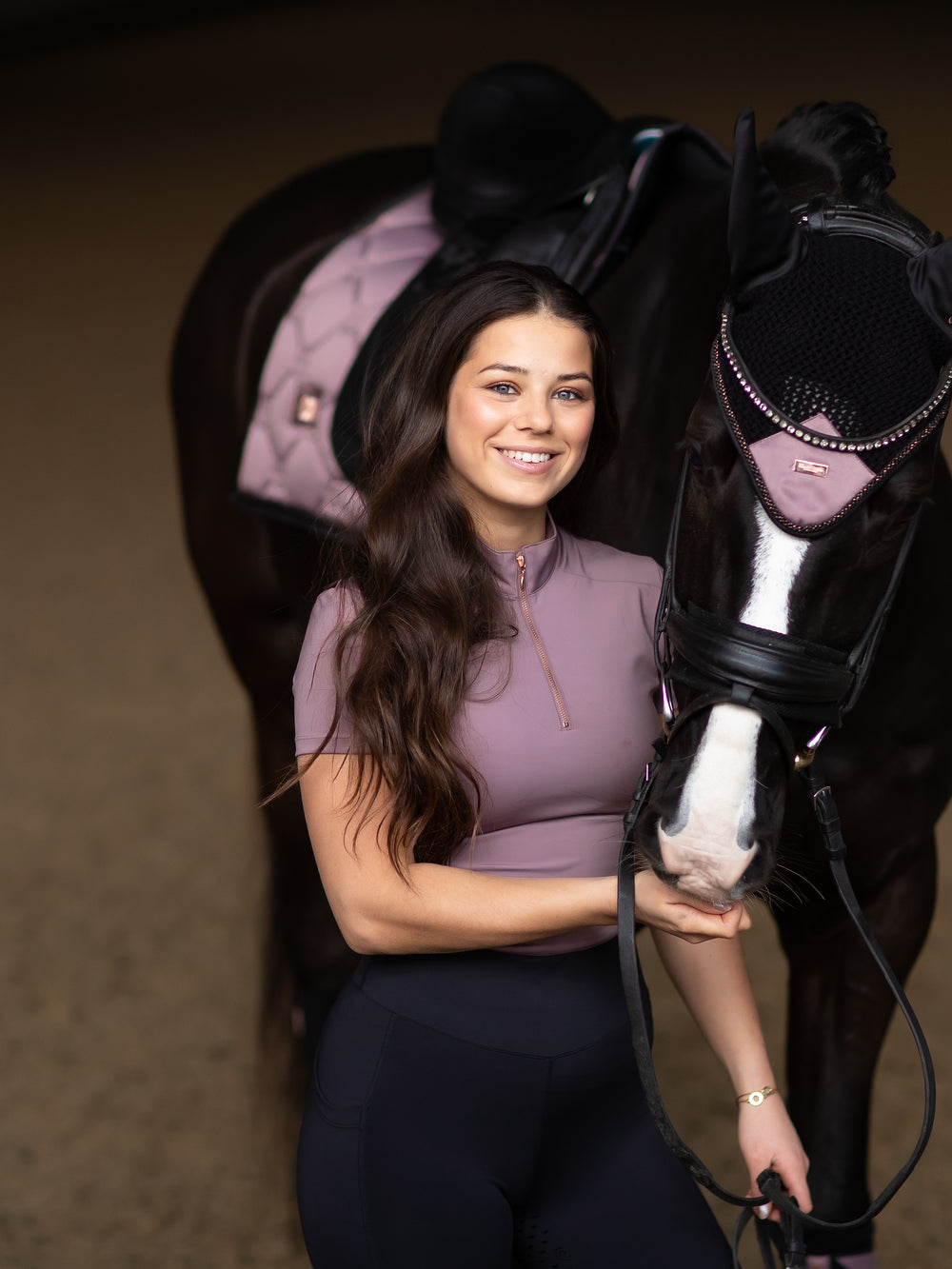 Exclusive and sporty Illusion top in a luxurious pink colour with rose gold details. The top is crafted in a breathable, recycled polyester blend with a slim fit and mesh along the sides. Decorated with a vertical Equestrian Stockholm logo on the back and a smaller logo on the left arm. Wear the perfect training top with other products from the Anemone collection for a complete look.