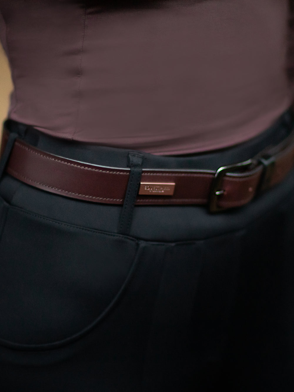 Exclusive leather belt that comes in a clean design in a beautiful brown with a touch of red and with a buckle in black nickel. Decorated with the Equestrian Stockholm logo on a purple brown metal badge. Available in a wide size range.