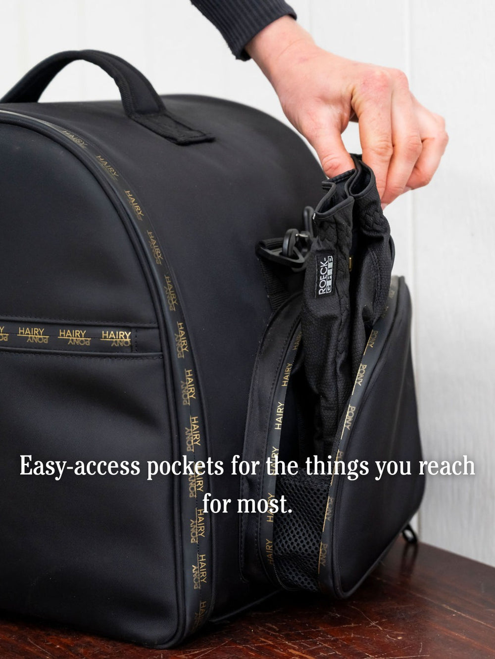 The Hairy Pony Helmet Bag offers ample room to keep your helmet, accessories, and daily essentials all in the one place — ideal for keeping things neat and tidy at home or staying organised on competition days.