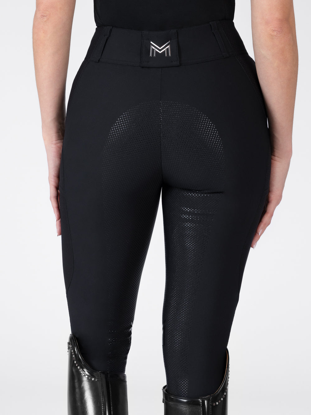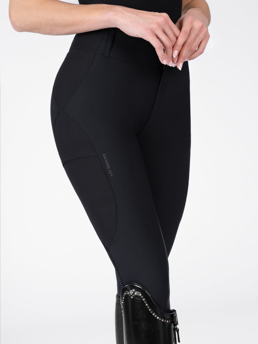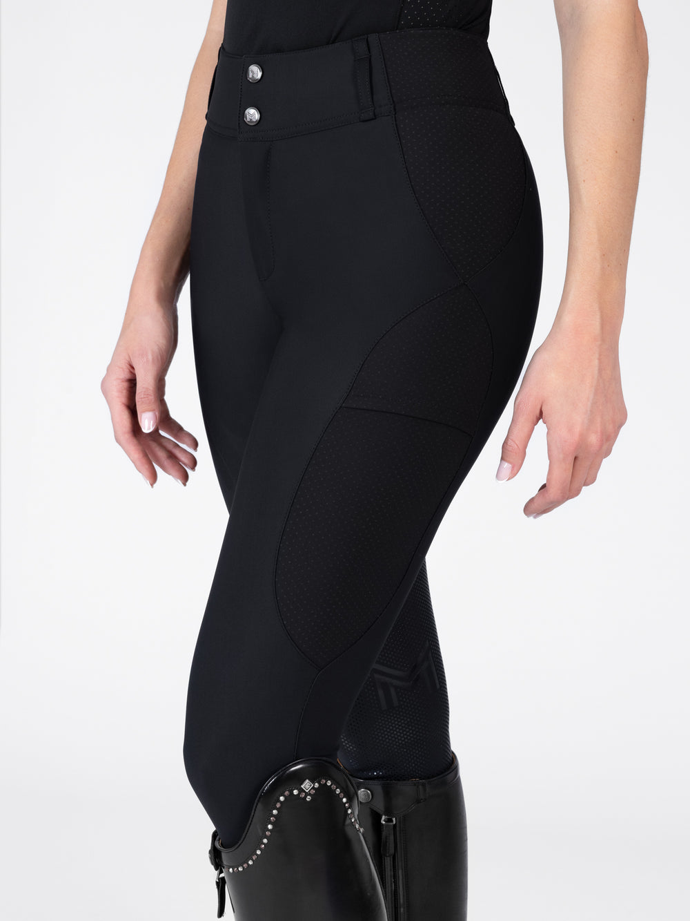 - High-waisted breeches with a wide waistband for added support and a secure fit