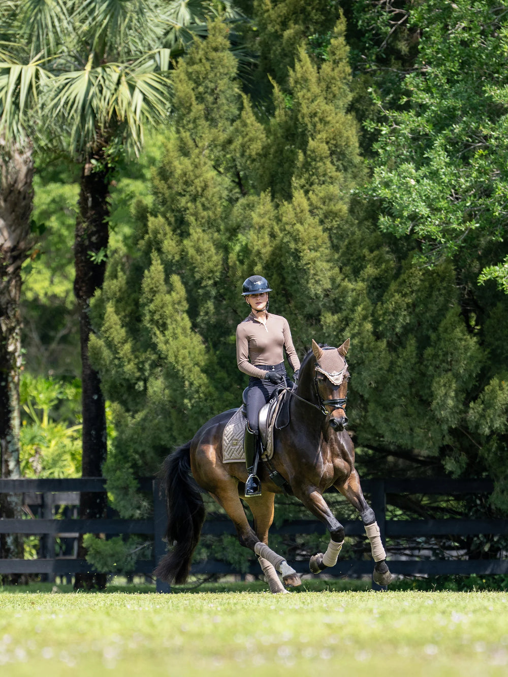 Elegant saddle pad with modern quilting in black with black details. Decorated with the Equestrian Stockholm badge in black. The bamboo material is perfect all year round due to its thermal regulating effect - cooling in the summer and warming in the winter. It is also quick dry, moisture wicking, and anti-bacterial