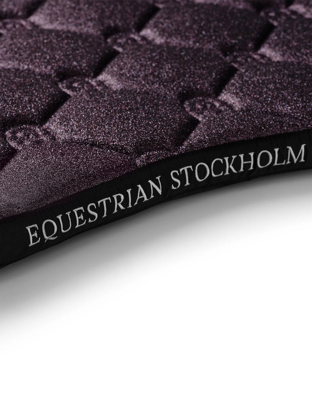 Elegant saddle pad in purple glitter with black details. Decorated with Equestrian Stockholm badge in black. The material is treated with High IQ cool comfort which gives the saddle pad quick dry and moisture wicking abilities. This helps your horse stay dry and fresh longer. We have added a durable protection patch under the velcro strap by the girth where there is most wear and tear.