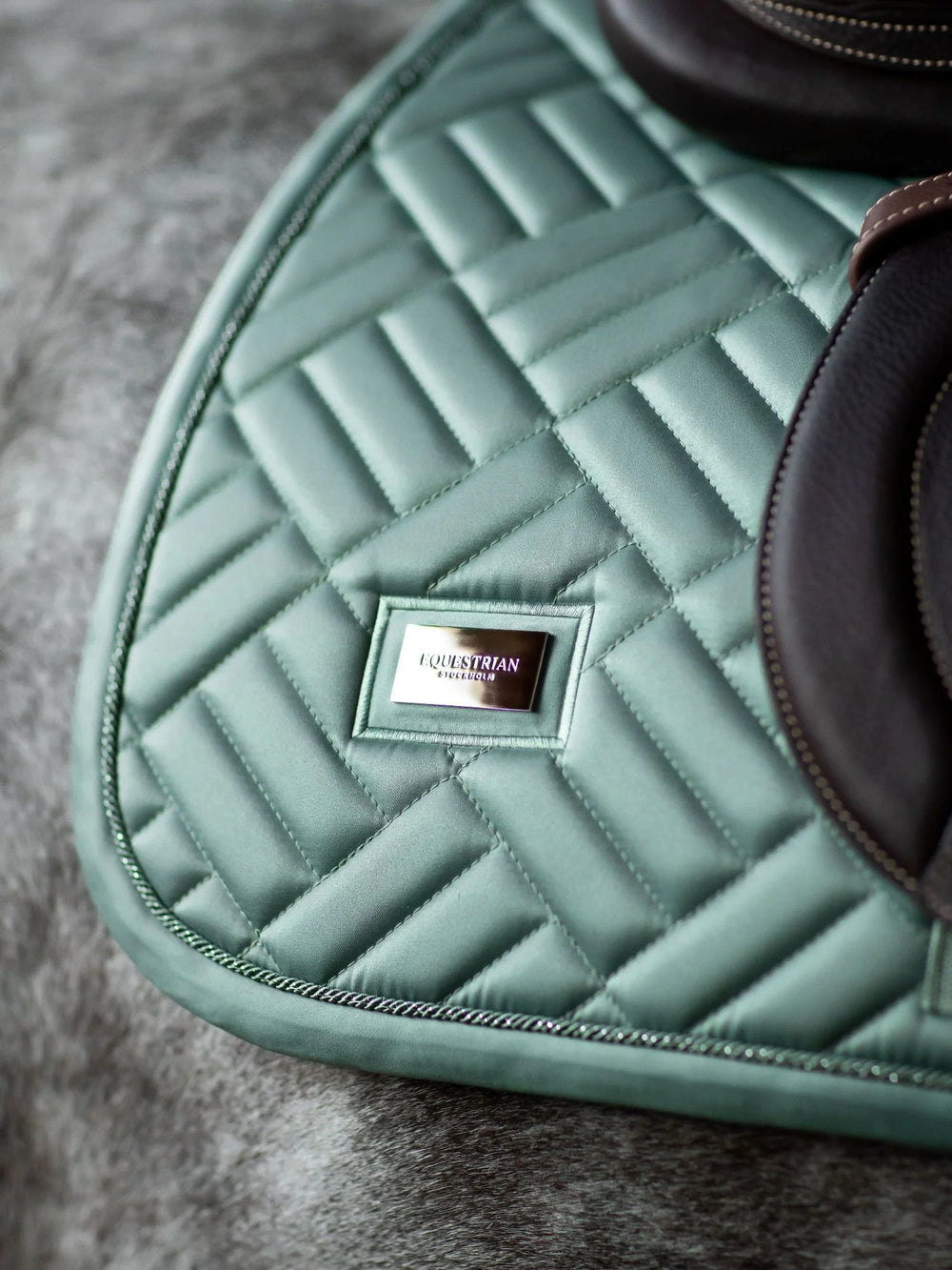 Elegant saddle pad with modern quilting in mint green with silver details. Decorated with the Equestrian Stockholm badge in silver. The bamboo material is perfect all year round due to its thermal regulating effect - cooling in the summer and warming in the winter. It is also quick dry, moisture wicking, and anti-bacterial. Style with other pieces from the Mint collection for a head-to-toe stylish look.