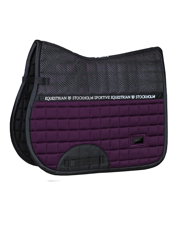 Sportive saddle pad in a dark purple colour. Designed with black grip mesh to make sure the saddle stays in place. Decorated with an Equestrian Stockholm badge in black. The bamboo material is perfect all year round due to its thermal regulating effect – cooling in the Summer and warming in the Winter. It is also quick dry, moisture wicking, and anti-bacterial. Style with other pieces from the Sportive Black Raven collection for a head-to-toe stylish look