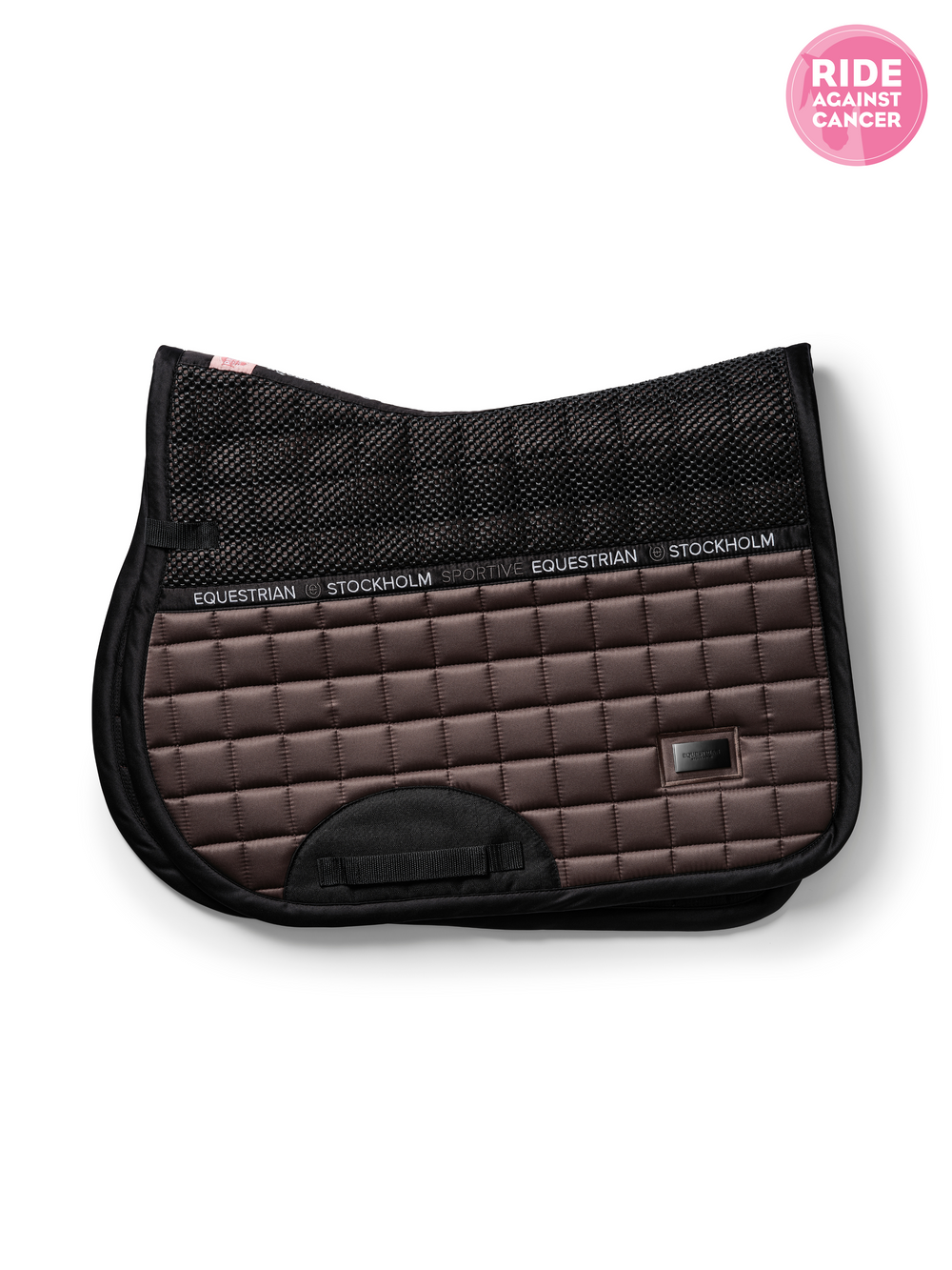Sportive saddle pad in a dark mocha brown colour. Designed with black grip mesh to make sure the saddle stays in place. Decorated with an Equestrian Stockholm badge in black. The bamboo material is perfect all year round due to its thermal regulating effect - cooling in the summer and warming in the winter. It is also quick dry, moisture wicking, and anti-bacterial. Style with other pieces from the Sportive Mocha collection for a head-to-toe stylish look.