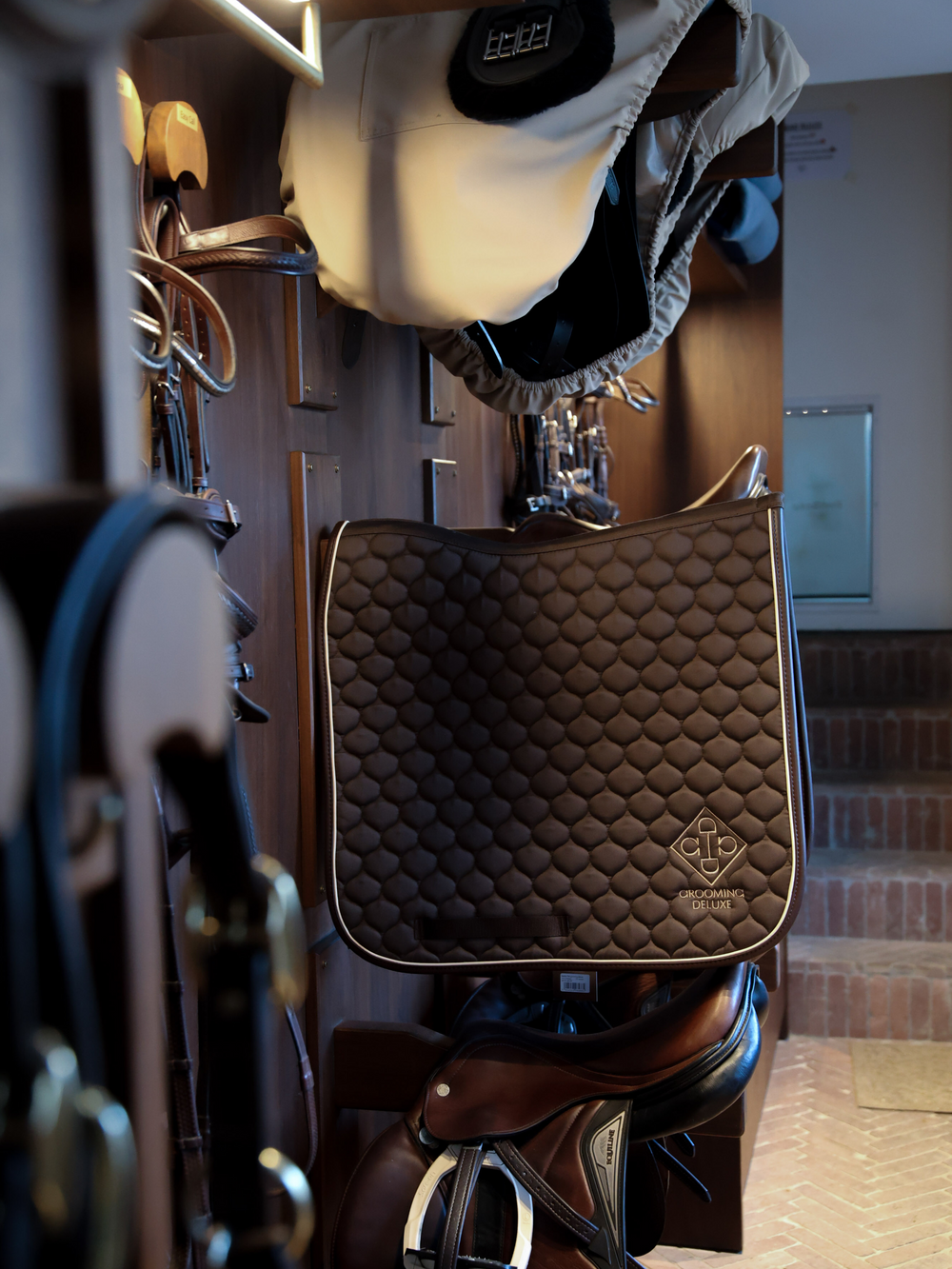 The Grooming Deluxe Saddle Pad combines elegance and performance, designed to provide your horse with ultimate comfort and style. Its luxurious quilted pattern and neutral color make it suitable for any occasion, whether for competition or training. Crafted from high-quality materials, this pad ensures breathability, durability, and a perfect fit, keeping your horse comfortable and protected.