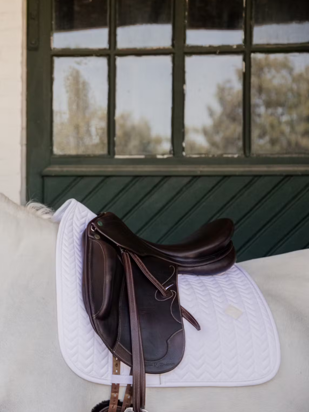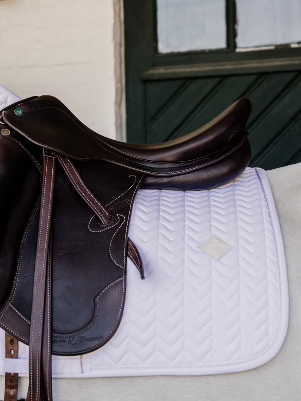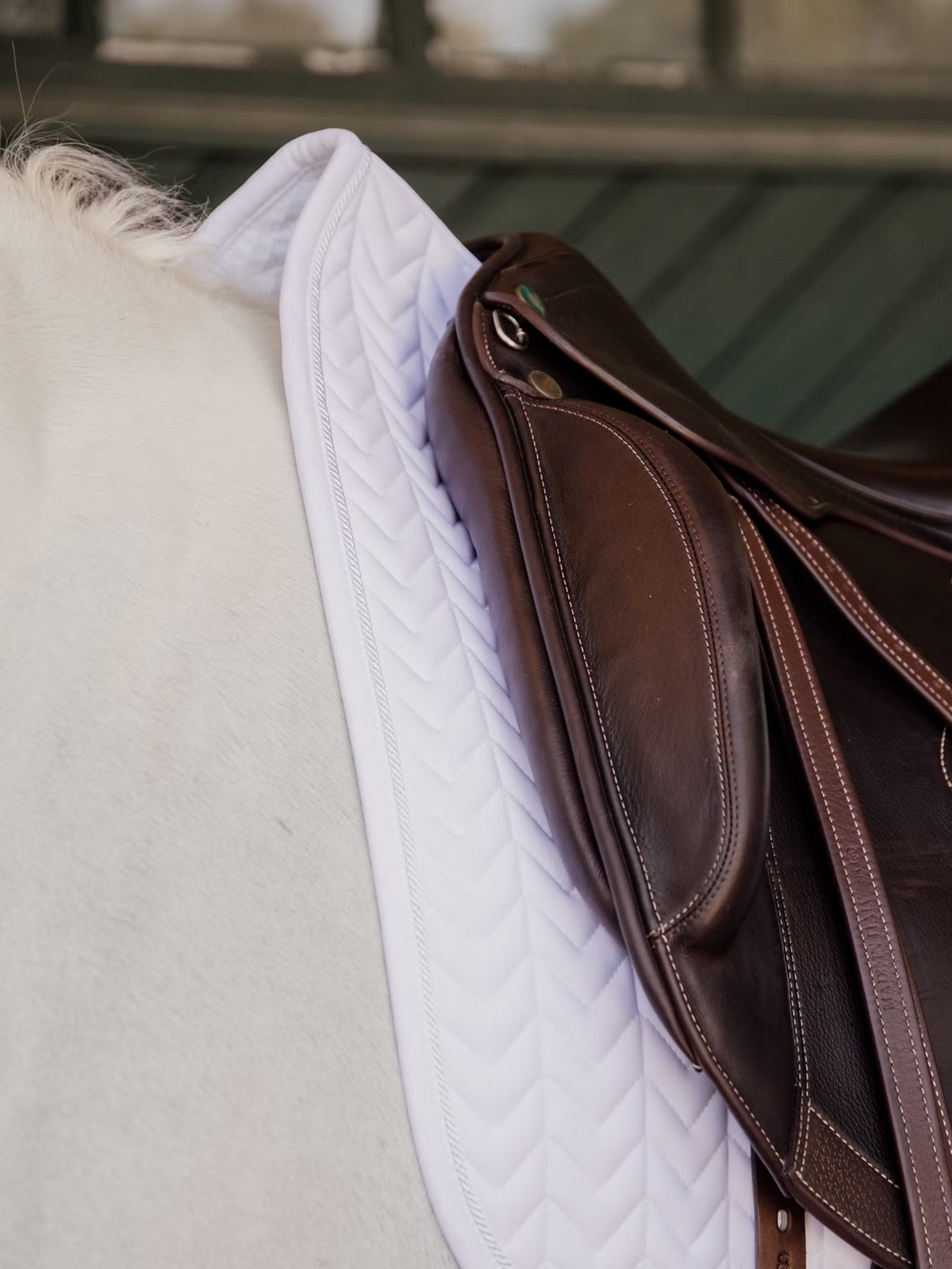 This Saddle Pad Fishbone Dressage has a unique fishbone quilting and is made out of a breathable material.