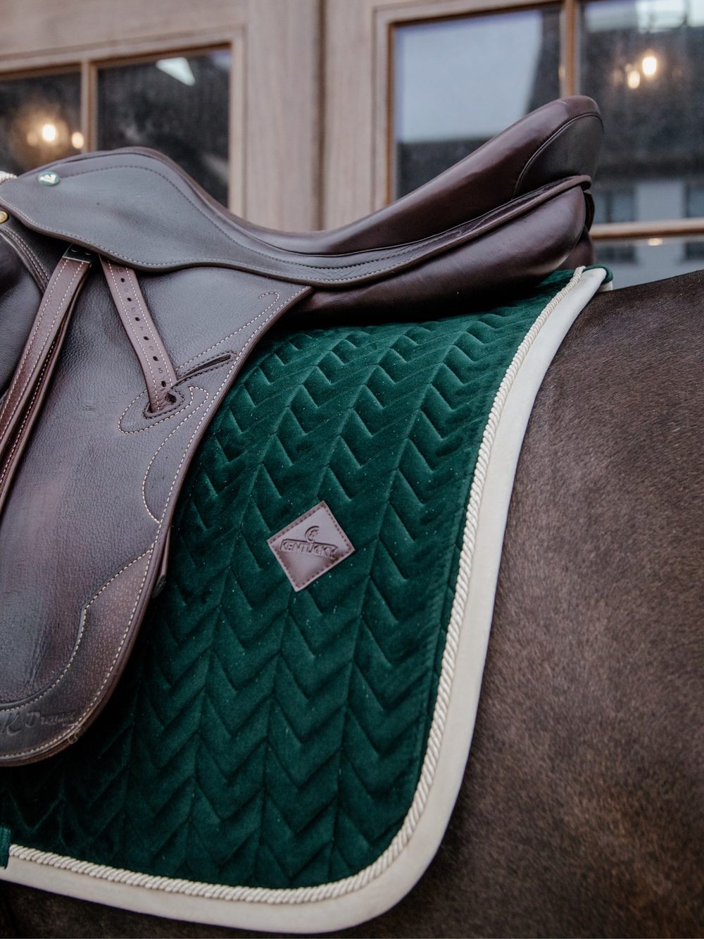 Kentucky Velvet Contrast Dressage Saddle Pad & Ear Bonnet Pine Green