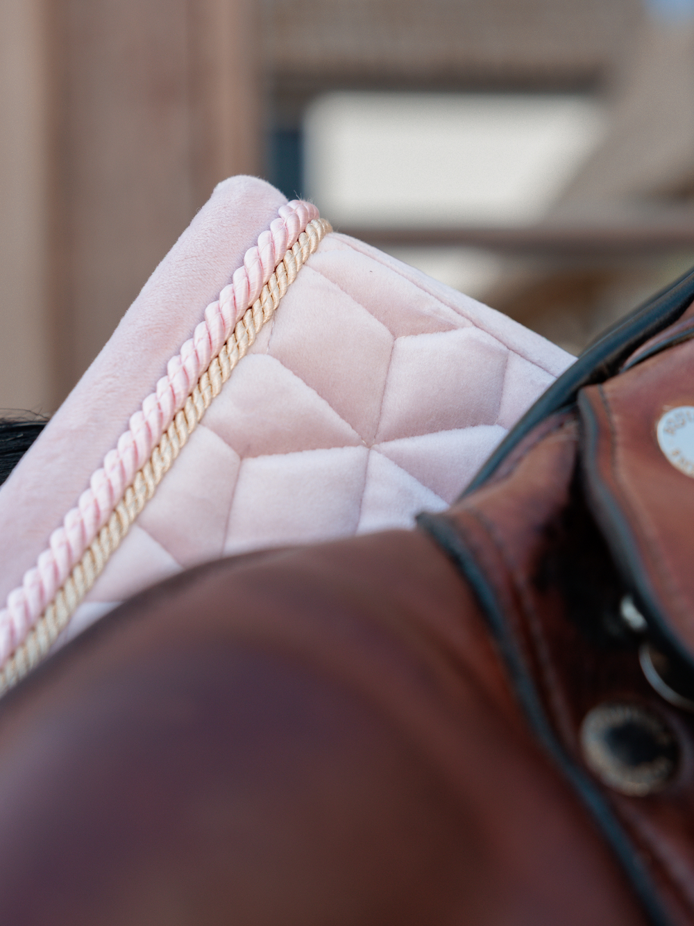 The Saddle Pad Velvet is shaped for jumping and provides excellent cushioning between the horse’s back and the saddle while protecting against friction. It is super stylish and classy, with a double twisted piping. This pad has no annoying straps to attach to the saddle, only a nylon strap for the girth. The subtle artificial leather logo is placed in a central, slightly higher place which always leaves room for embroidery of your own logo if desired. Machine washable at 30°, no dryer.