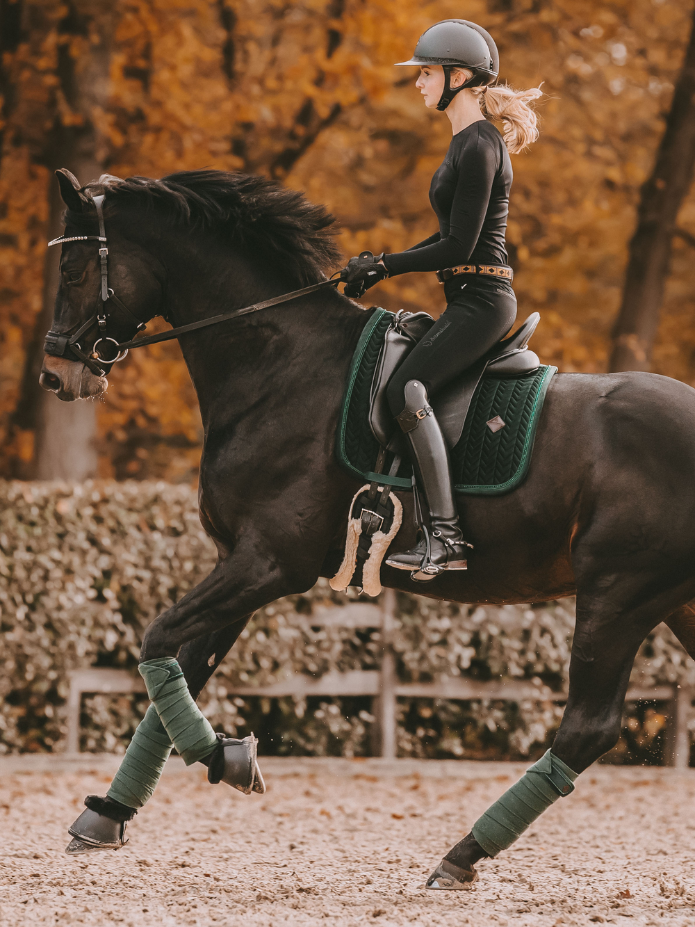 Kentucky Horsewear Velvet Pearls Dressage Saddle Pad Pine Green