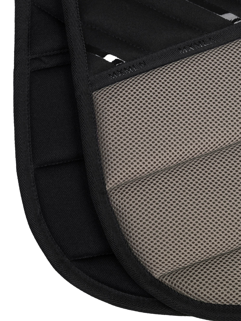 - Suede fabric placed on the upper part of the saddle pad with additional grip stripes to make sure the saddle pad stays in place, avoiding any slipping