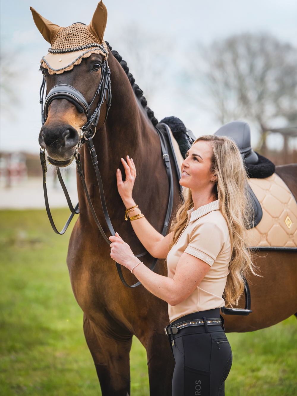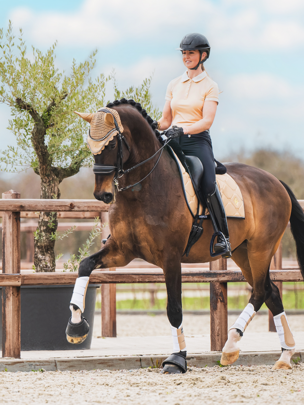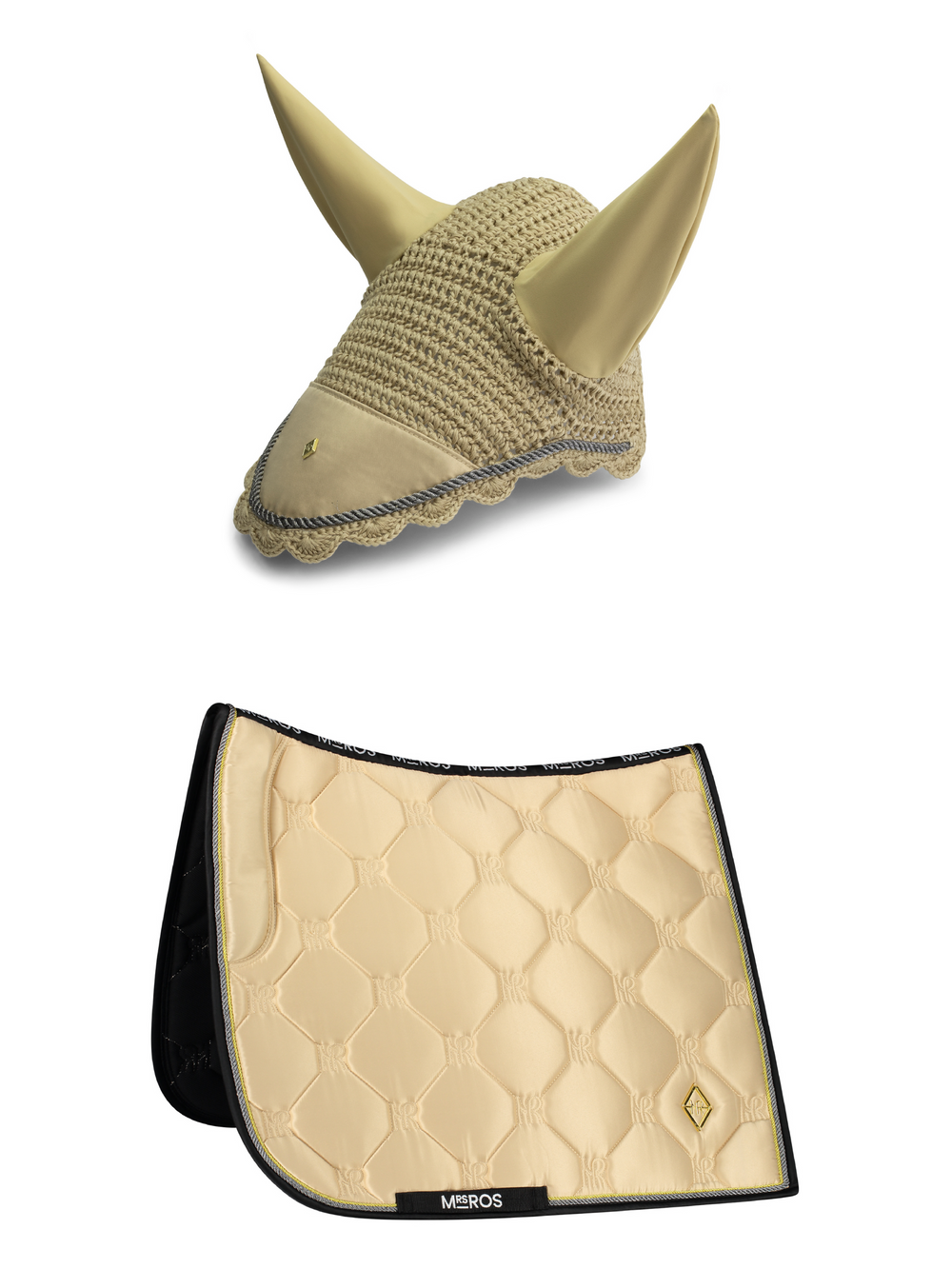 Mrs Ros Charmer Dressage Saddle Pad & Ear Bonnet Desert Dust