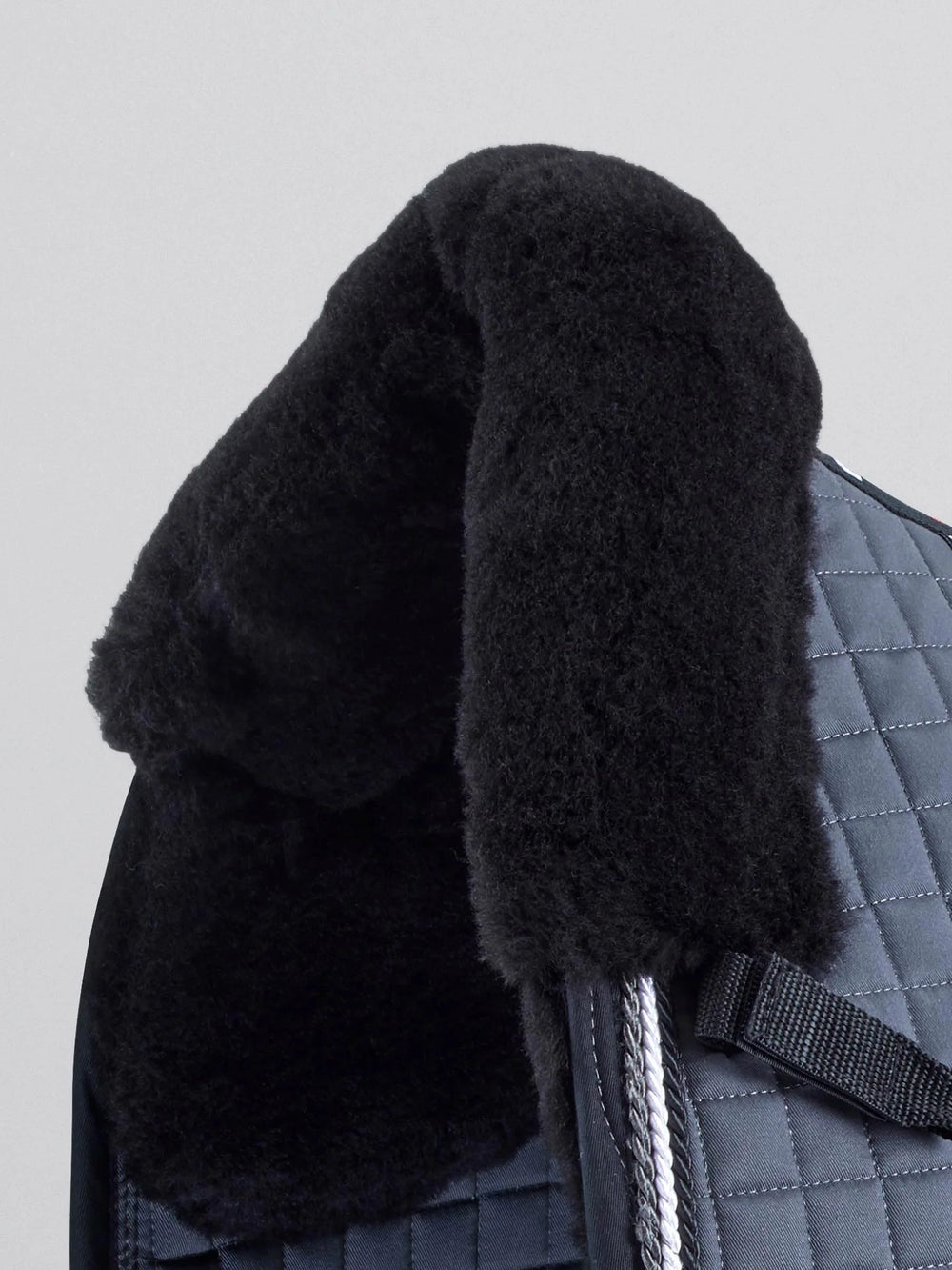 Merino wool knitted onto cotton yarn gives you all the wool you need with no skin attached. The natural fibres of wool are less likely to cause skin reactions or allergies. Wool also has the ability to absorb up to 30% of its own weight in moisture, keeping your horse dry and comfortable under saddle. Real wool is still one of the most technically advanced materials in the world and probably the best you can use under a saddle pad.
