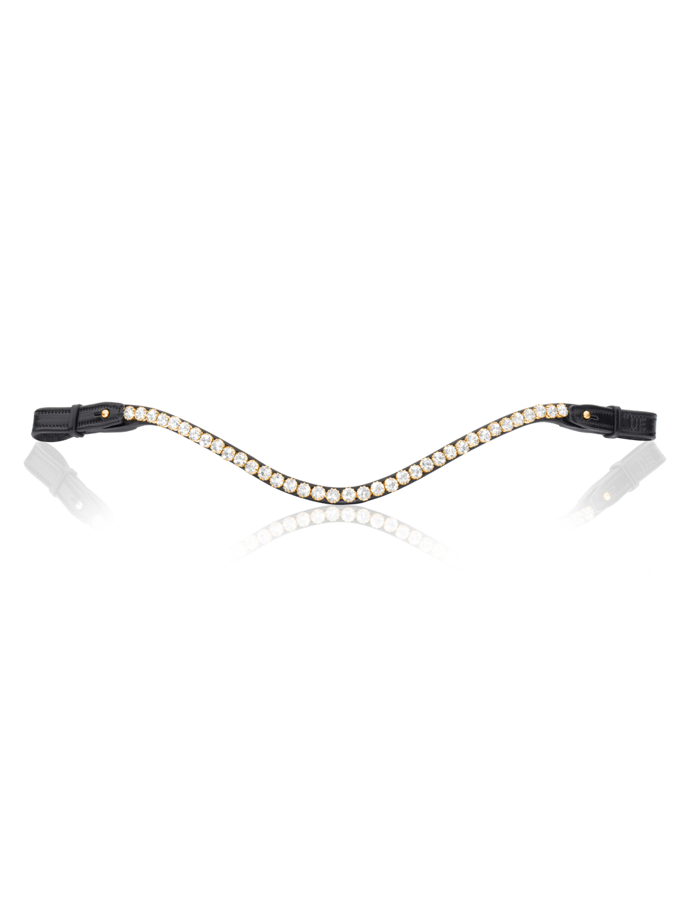 Browband with shiny crystals handmade in our exclusive Italian leather. The browband has a stud on the inner side, which enables you to easily change the browband without having to remove it from the horse's head.