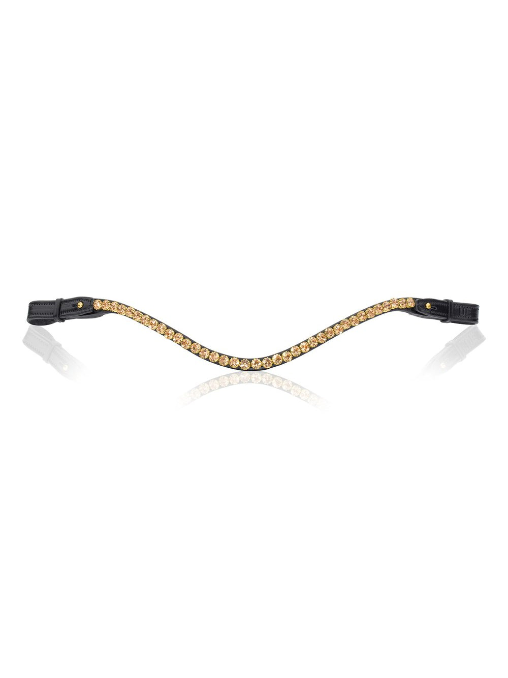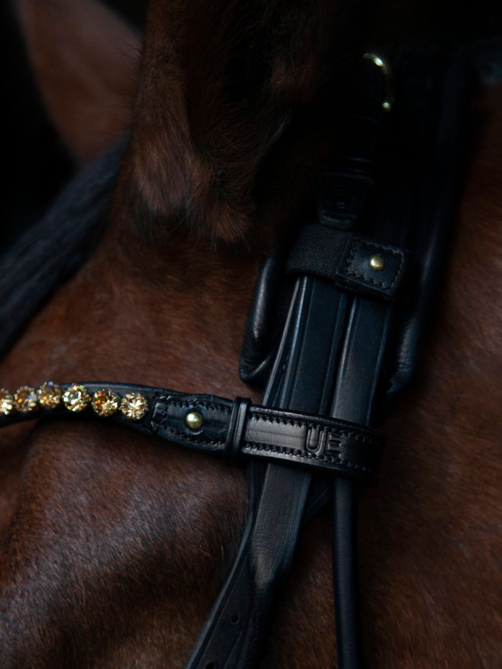 Browband with shiny crystals handmade in our exclusive Italian leather. The browband has a stud on the inner side, which enables you to easily change the browband without having to remove it from the horse's head.