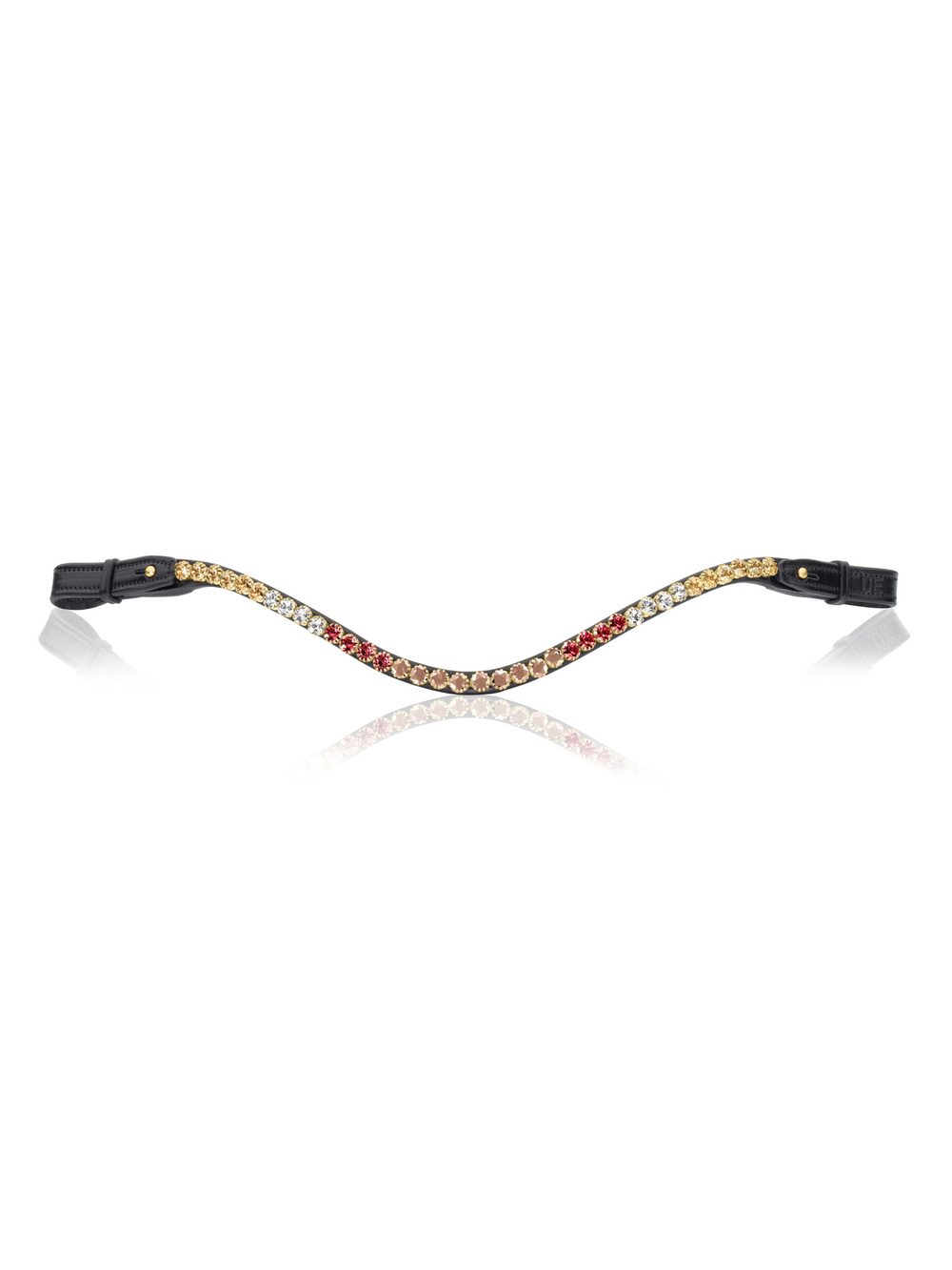 Browband with shiny crystals handmade in our exclusive Italian leather. The browband has a stud on the inner side, which enables you to easily change the browband without having to remove it from the horse's head.