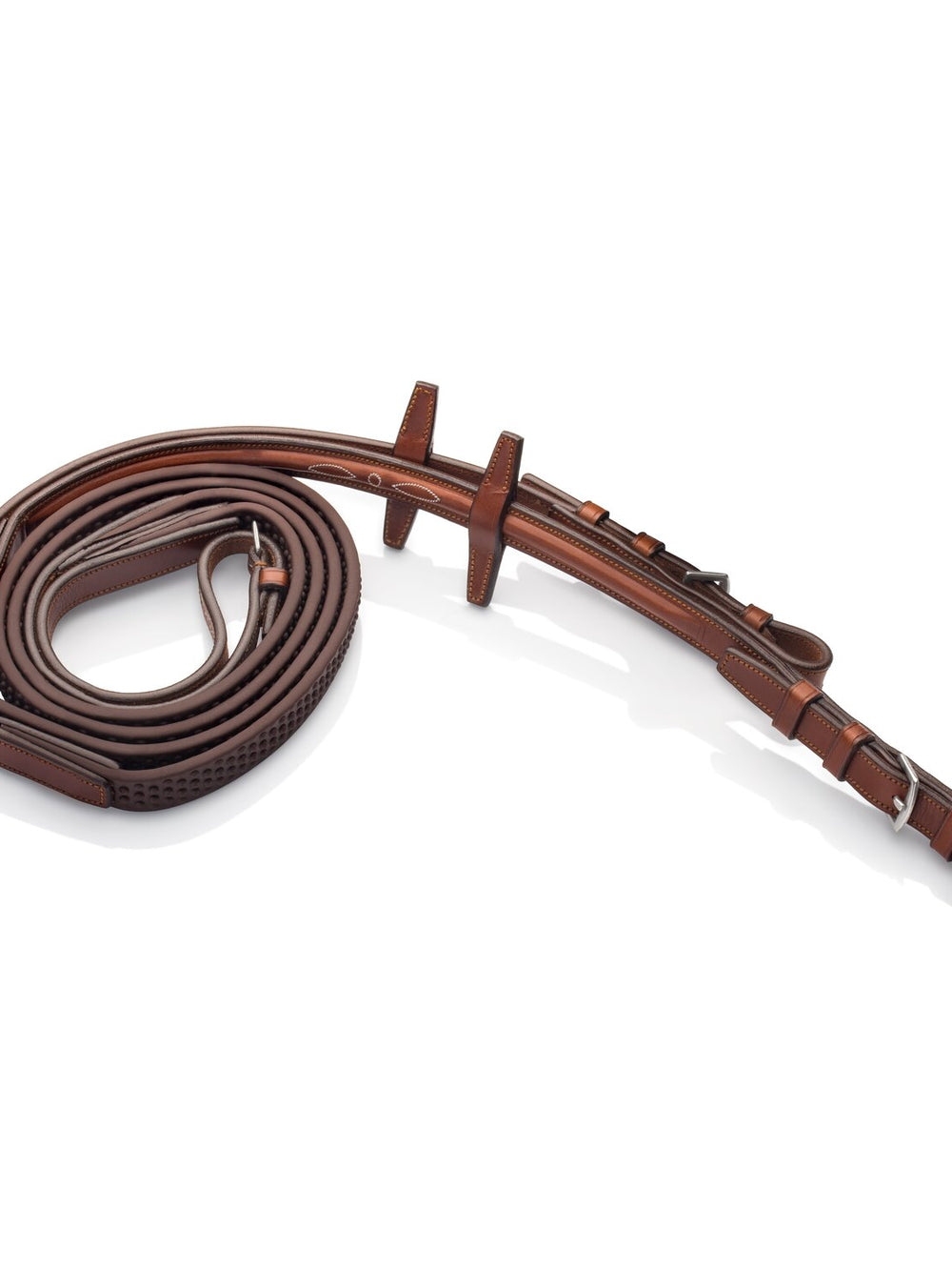 These Italian leather reins feature steel fittings and flexible pimpled rubber grip.